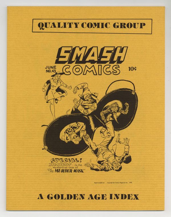 Index of Quality Comic Group comics from the Golden Age (Hit, Smash, Feature, Police, etc.), plus cover reproductions with art by Reed Crandall, Jack Cole, and Al Bryant. 8.25 x 10.75; black and white; 48 pages; squarebound.
