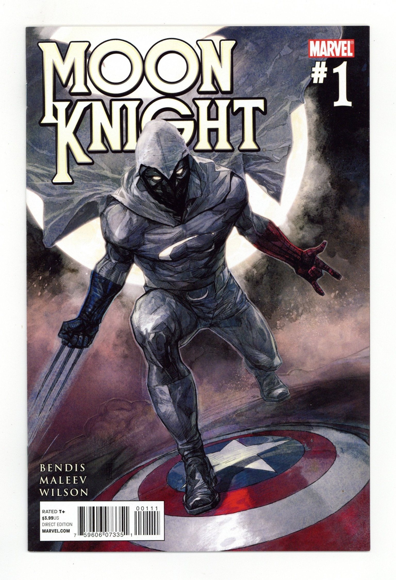 Tags: Marvel Legacy Numbering: Moon Knight (part 145)$21.00Cover by ALEX MALEEV Written by BRIAN MICHAEL BENDIS Pencils by ALEX MALEEV The wait is over! Moon Knight is here...like you ' ve never seen him before! And we mean NEVER! The Eisner award-winning team of Bendis and Maleev tear into the mythos of Moon Knight with the same verve and derring-do they brought to Daredevil. A MARVELOUS reinterpretation of one of the most enigmatic characters in Marvel history starts right here! 40 PGS./Parental Advisory Cover price $3.99.