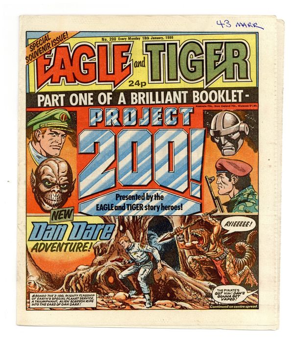 Jan. 18, 1986. "Eagle and Tiger" on cover. Dan Dare, plus other features. Published in the United Kingdom, 8-1/2-in. x 11-1/2-in, 32-pages including cover, all newsprint stock. Mix of color and black/white interior.