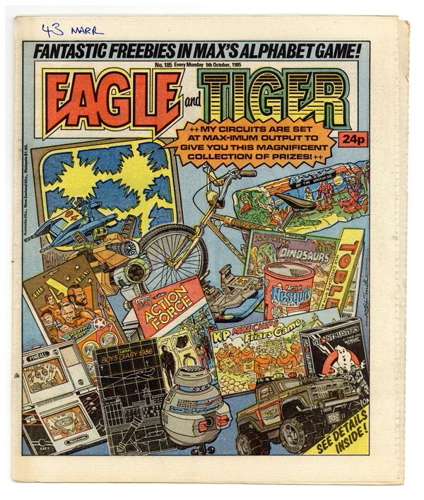Oct. 5, 1985. "Eagle and Tiger" on cover. Dan Dare, plus other features. Published in the United Kingdom, 8-1/2-in. x 11-1/2-in, 32-pages including cover, all newsprint stock. Mix of color and black/white interior.