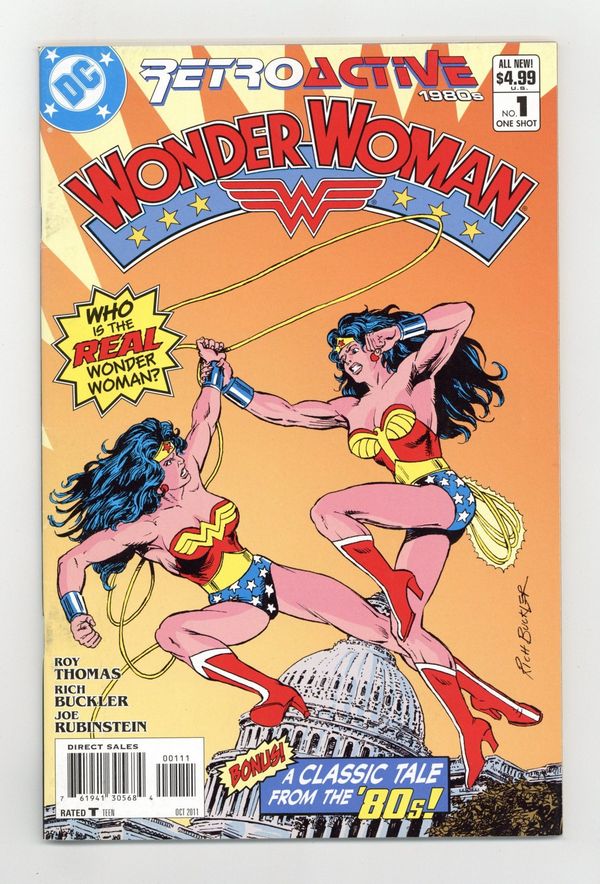 Written by ROY THOMAS. Cover by RICH BUCKLER. Art by RICH BUCKLER, TIM SMITH 3, CARLOS RODRIGUEZ, JOE RUBINSTEIN, JACK PURCELL and NORMAN LEE. In a new adventure written by 1980s WW scribe Roy Thomas, Wonder Woman battles the sinister Silver Swan to protect her secret identity from being revealed. And don't miss a classic tale from that era: Wonder Woman (1942-1986 1st Series DC) #288 by ROY THOMAS, GENE COLAN and ROMEO TANGHAL. 56 pg, FC. Cover price $4.99.