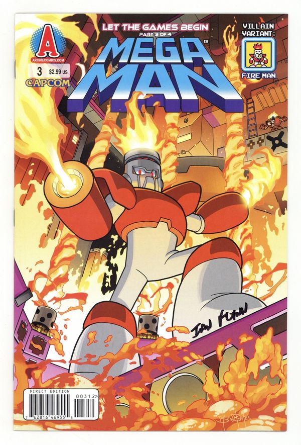 Villain cover by Ben Bates Let the Games Begin!: Part 3 of 4 - (W) Ian Flynn (A) Patrick Spaziante. Dr. Wily is trying to take over the world with his stolen Robot Masters, but he didn't count on Mega Man! The young hero is tearing through the would-be world conquering robots, but is the power going to his head? Cover price $2.99.
