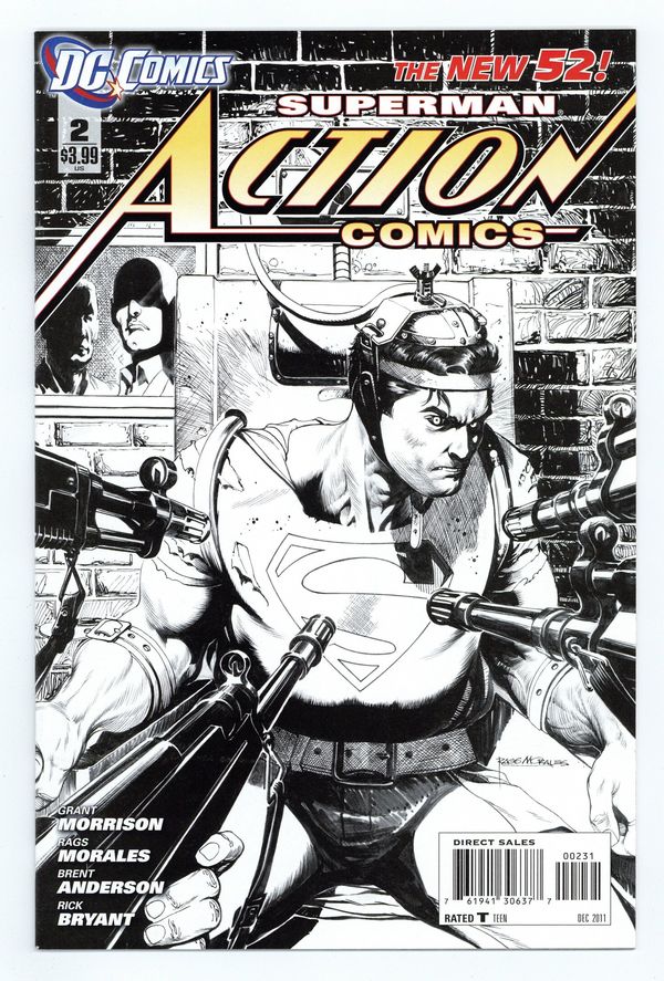 $27.00Limited 1 for 200 B&W Variant Cover by RAGS MORALES. Written by GRANT MORRISON. Pencils by RAGS MORALES and BRENT ANDERSON, inks by RICK BRYANT and BRENT ANDERSON. In his weakest moment, Superman is taken down - but by whom? And if the world wasn't ready for a man with super powers, they're utterly unprepared for the rage of a Superman cornered! The cornerstone character of the new DCU continues his debut adventure! 40 pg, FC. Cover price $3.99.
