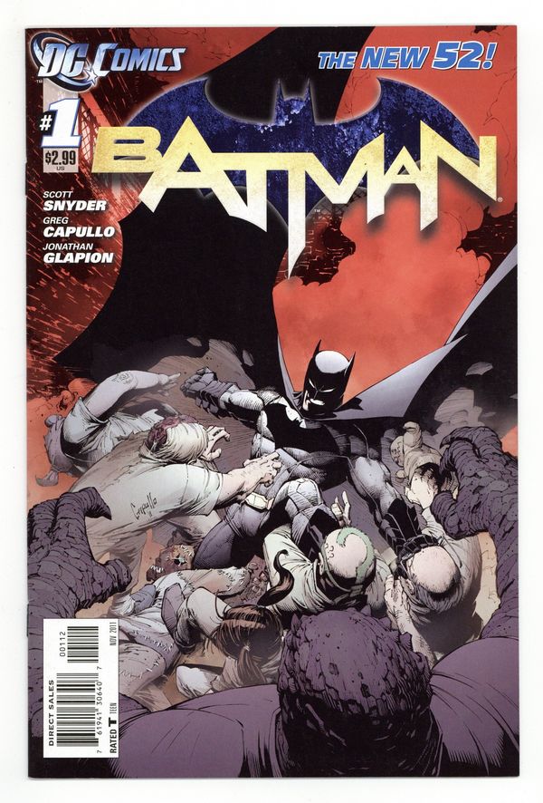 SECOND PRINTING Cover by GREG CAPULLO Written by SCOTT SNYDER Art by GREG CAPULLO and JONATHAN GLAPION Be here for the start of a new era for The Dark Knight from writer Scott Snyder (AMERICAN VAMPIRE, BATMAN: GATES OF GOTHAM) and artist Greg Capullo (Spawn)! A series of brutal killings hints at an ancient conspiracy, and Batman learns that Gotham City is deadlier than he knew. First appearance of Harper Row (cameo, not named in issue). Cover price $2.99.