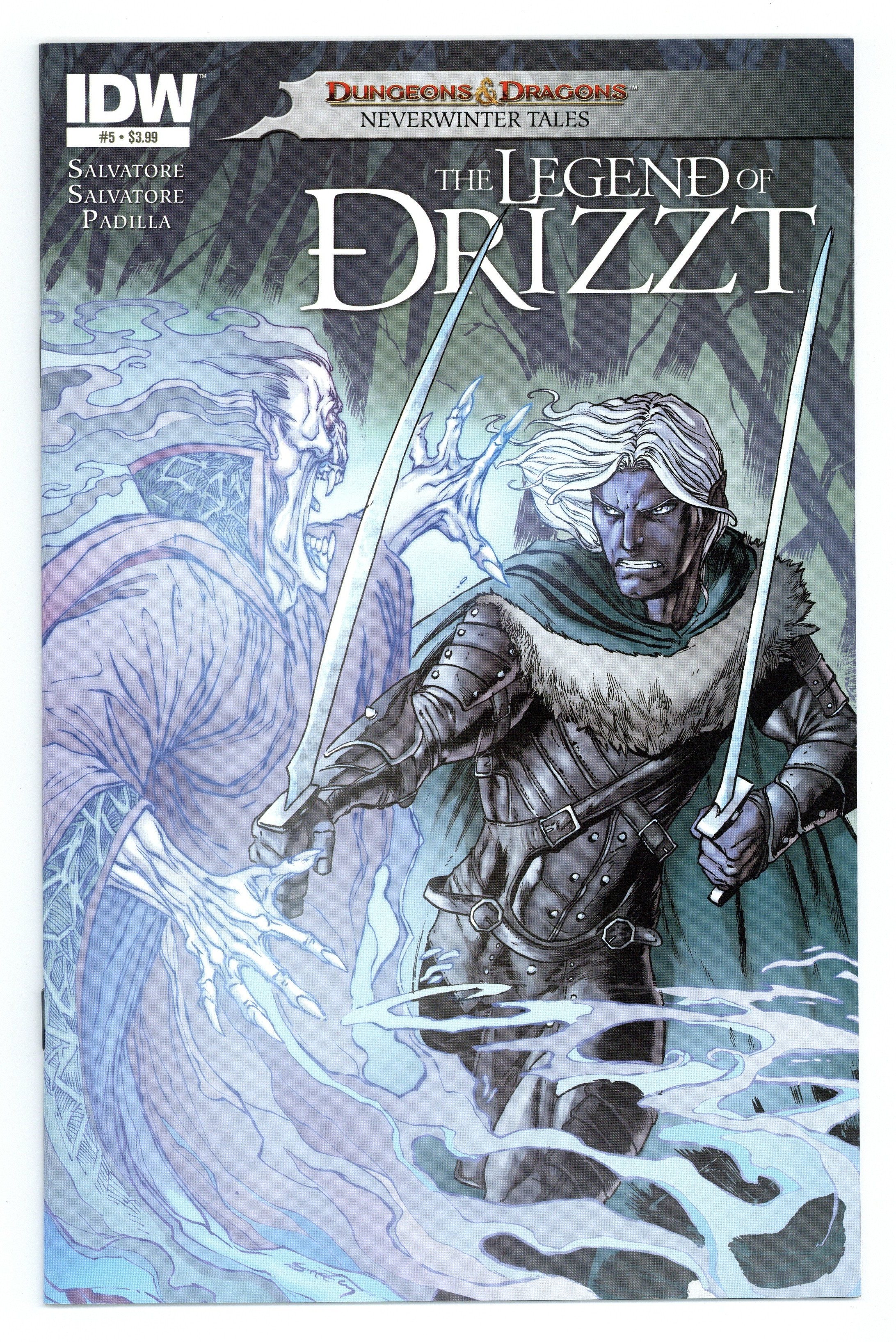 Cover by Tim Seeley. The first original comic starring DRIZZT DO'URDEN concludes! R.A. Salvatore maps out the future of his most famous creation from the popular FORGOTTEN REALMS setting with his son, Geno. Events come to a head, as DRIZZT faces a difficult decision in this stunning finale! Part of IDW's photo-cover month! Cover price $3.99.