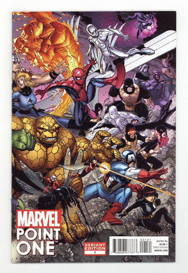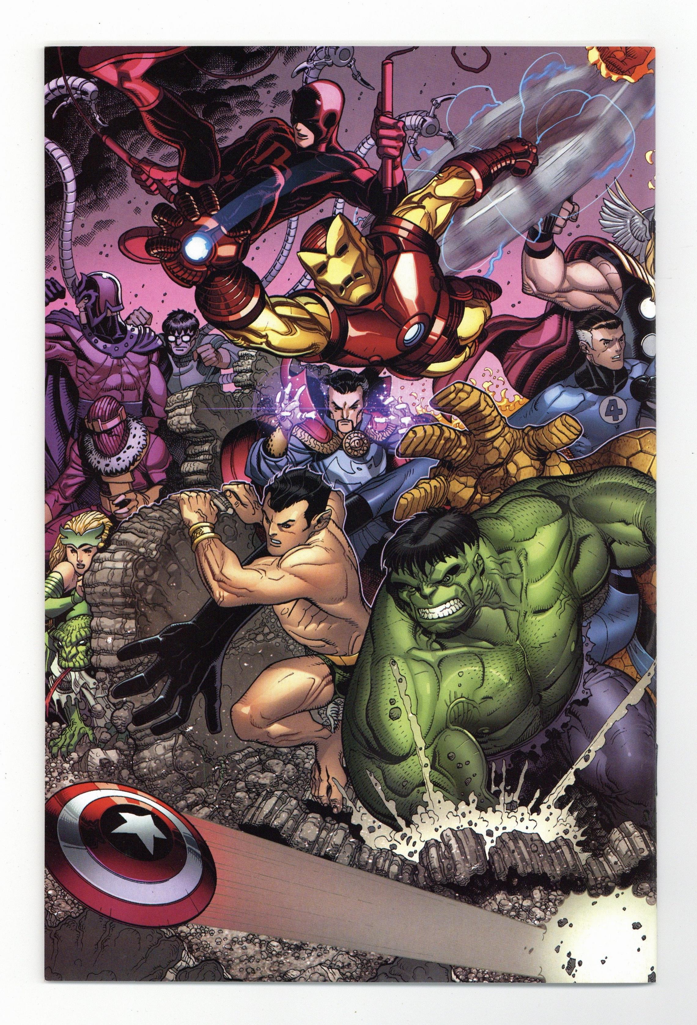 Wraparound Variant Cover by Nick Bradshaw Written and Drawn by BRIAN MICHAEL BENDIS, JEPH LOEB, ED BRUBAKER, MATT FRACTION, DAVID LAPHAM, FRED VAN LENTE, CHRISTOPHER YOST, ED mCGUINNESS, BRYAN HITCH, TERRY DODSON, ROBERTO DE LA TORRE, RYAN STEGMAN, JAVIER PULIDO, and MORE! IT ALL BEGINS HERE! Here are SEVEN all-new stories that set the stage for everything coming your way in 2012 from the biggest names in the comics industry. You CANNOT miss this! Catch a tease of the biggest change to the Marvel Universe in over 35 years! 64 PGS./Rated T+ ...$5.99 Cover price $5.99.