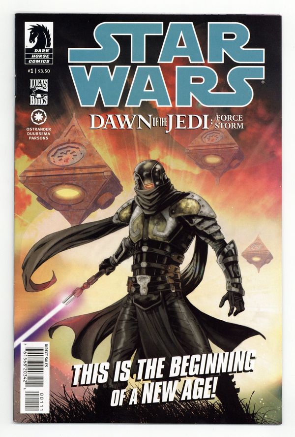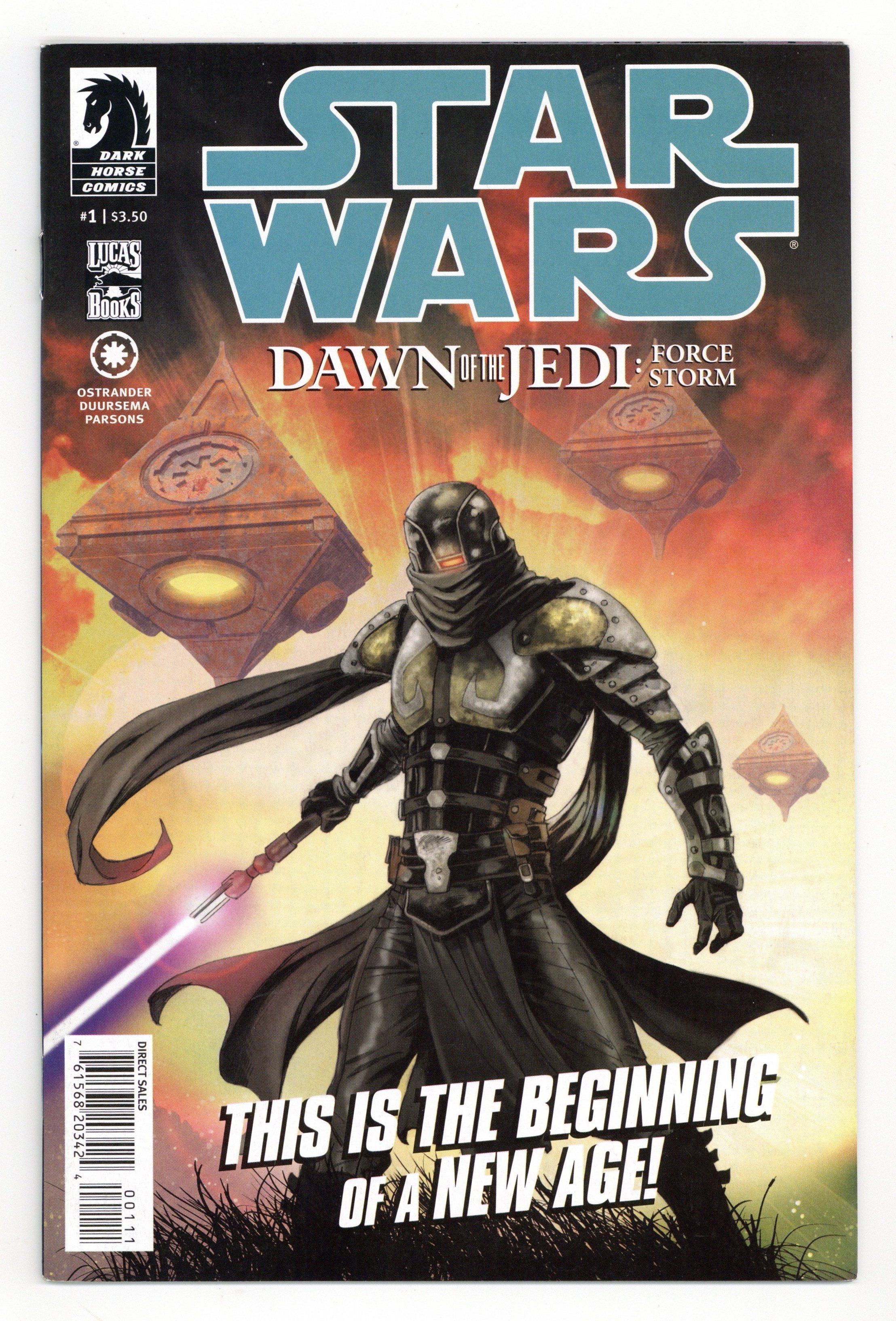 Cover by Jan Duursema (W) John Ostrander (A) Dan Parsons On the planet Tython, in the center of the galaxy, an order of warrior monks strives to maintain peace and to balance the mysterious power known as the Force. But a stranger is coming-one who will destroy both peace and balance, and open the galaxy to exploration and conquest. This is where it all begins! John Ostrander and Jan Duursema of Star Wars: Legacy fame reveal the mythic age of the Jedi's beginnings! Cover price $3.50.