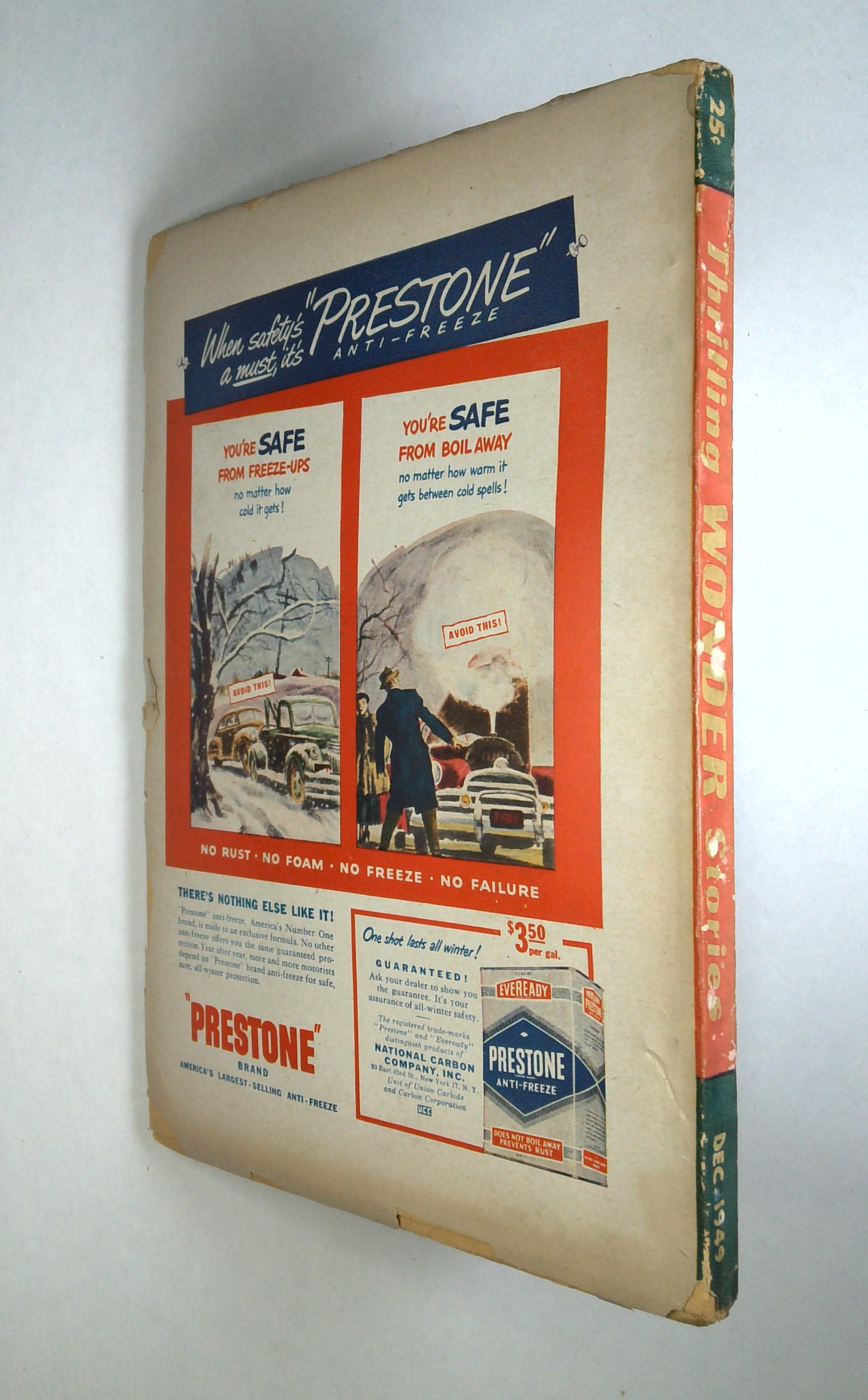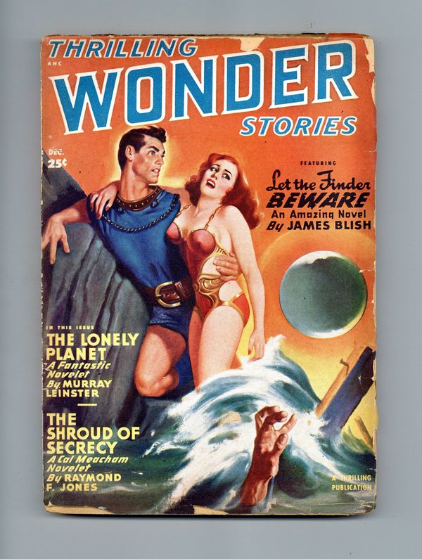 Volume 35, Issue 2 - December, 1949. Cover by Earle Bergey. Stories by James Blish, Murray Leinster, Raymond F. Jones, Arthur C. Clarke, Ray Bradbury, William Morrison, Cleve Cartmill, and L. Sprague de Camp. Two Virgil Finlay illustrations. 7-in. x 10-in.; black and white; 160 newsprint pages. Cover price $0.25.