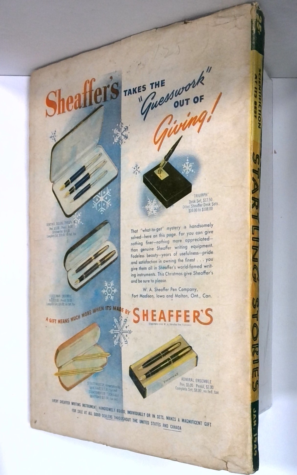 Published Jan 1949 by Better Publications.$21.00- Front cover detached 20%. Back cover detached 20%. Water damage: Moderate. Staple rust: Slight.
