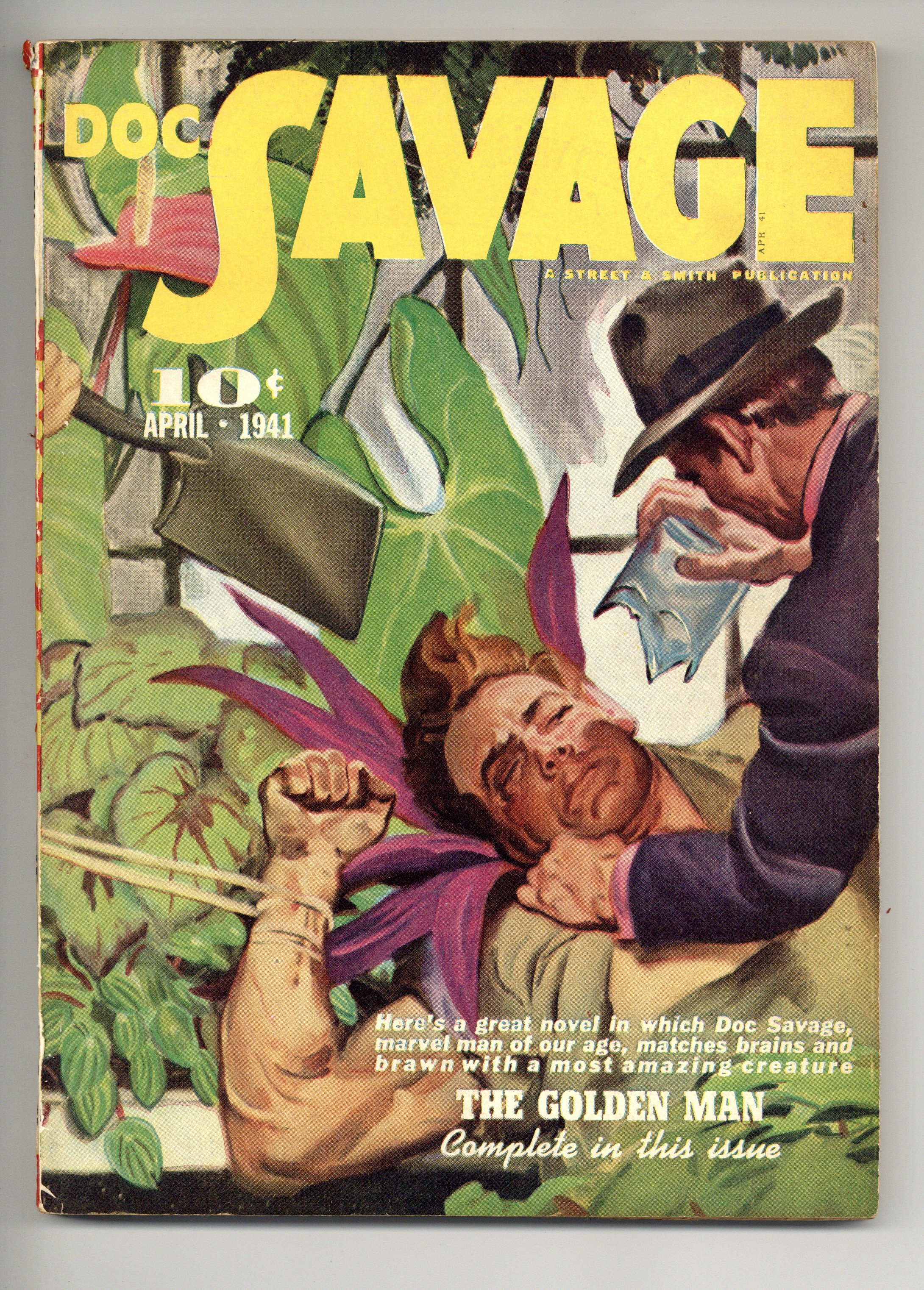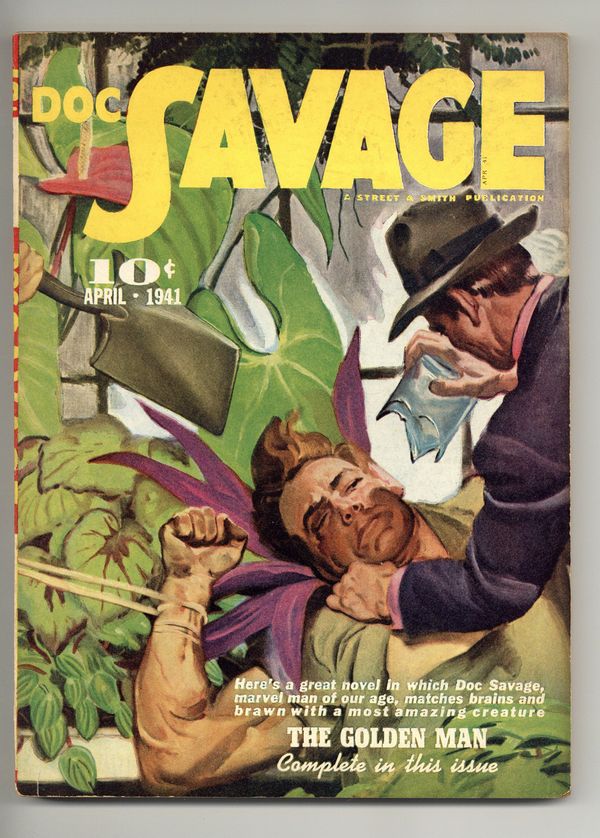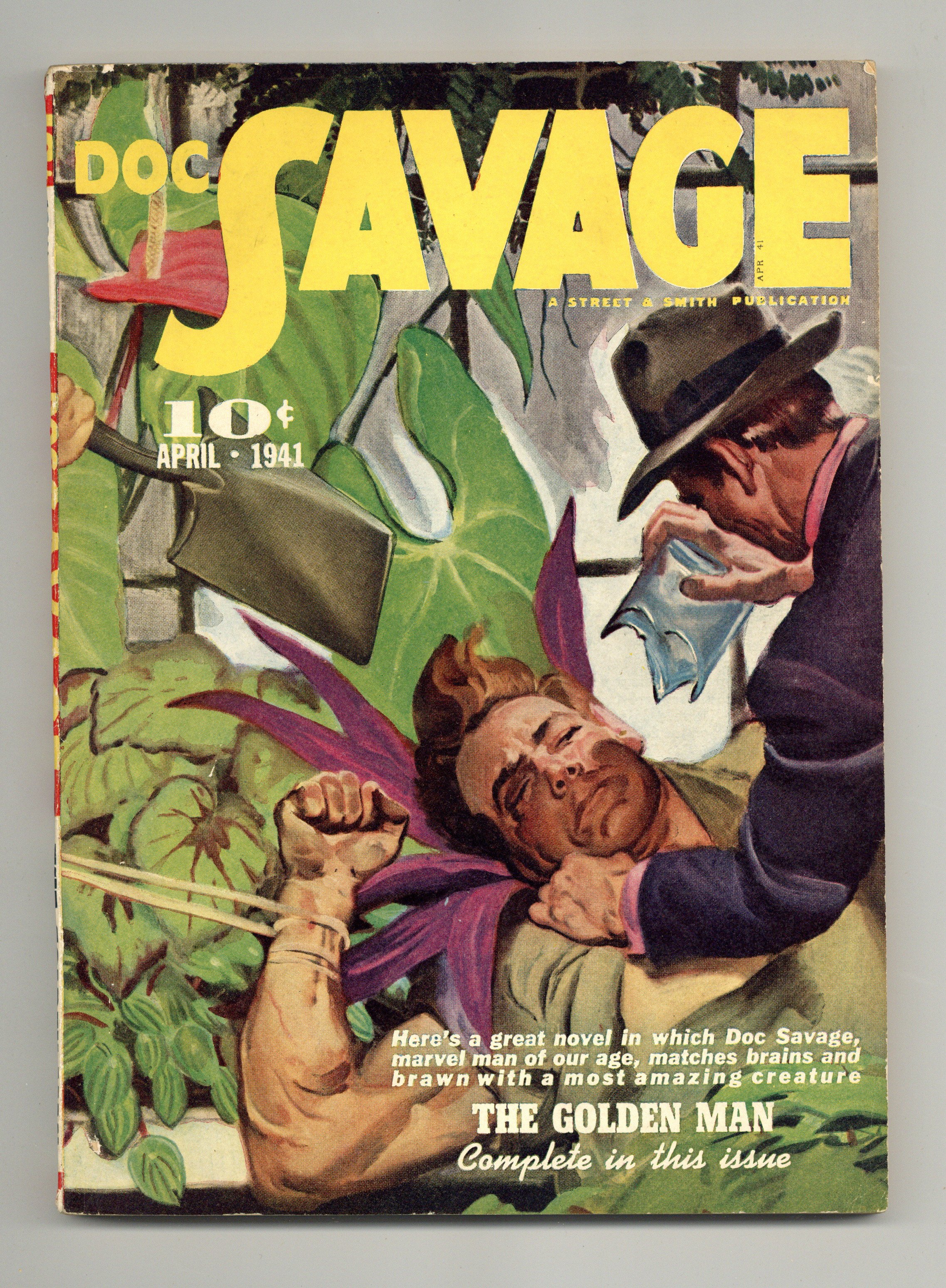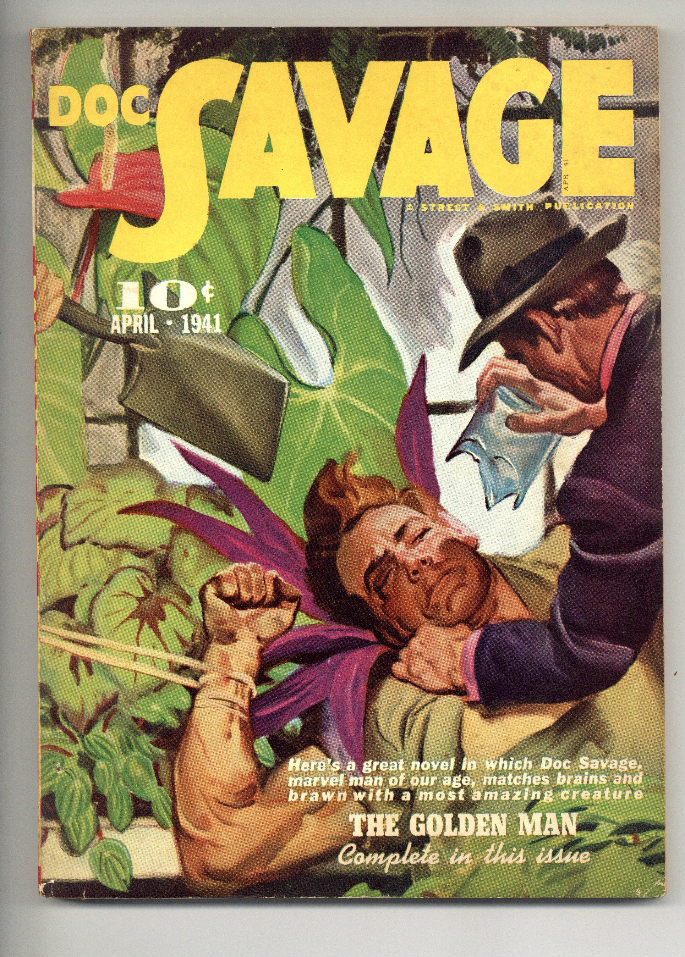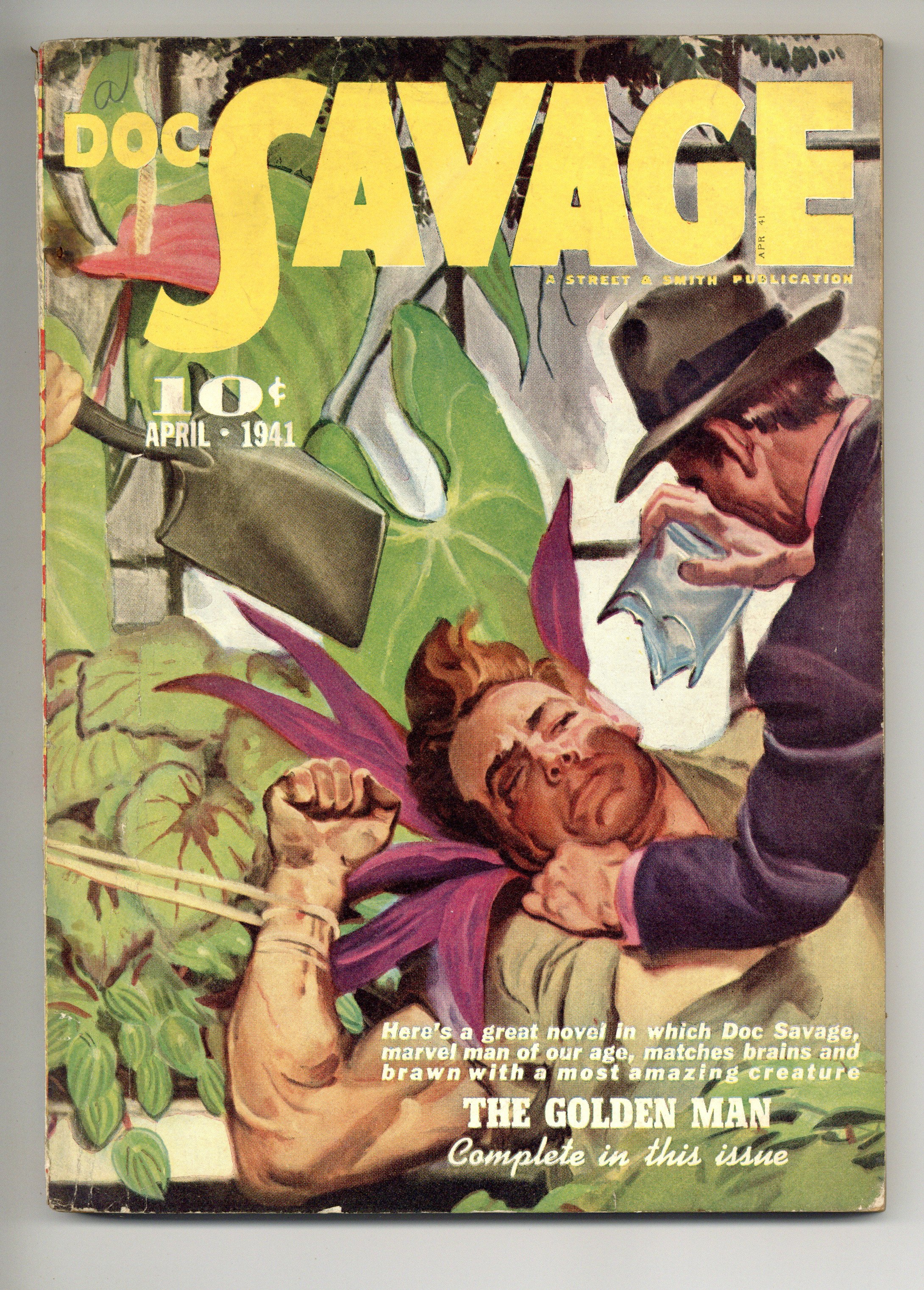 April 1941. Cover by Emery Clarke. Stories include "The Golden Man," a book-length novel by "Kenneth Robeson"; and "The Emerald Dagger" by George L. Eaton. 6.75-in x 9.25-in; black and white; 112 newsprint pages. Cover price $0.10.