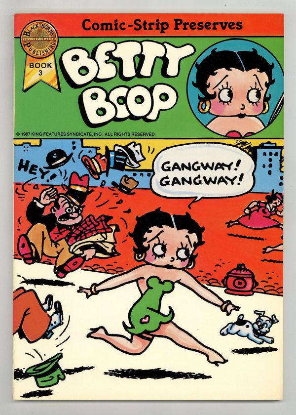 Published Jan 1987 by Blackthorne.$5.00Volume 3 - 1st printing. Stories, art and cover by Bud Counihan, plus paper dolls designed by Barb Rausch. Edited by Shel Dorf. Blackthorne Publishing presents a series of vintage comic-strip reprints featuring the famed animated cartoon star Betty Boop. Betty finds love with her diminutive new beau Hunky Dory, but Hollywood stardom still eludes her; Bubby and Aunt Tillie have their own adventures in Tinseltown. Also featuring Betty Boop paper dolls with a variety of outfits. 72 pages, B&W. Cover price $5.95.