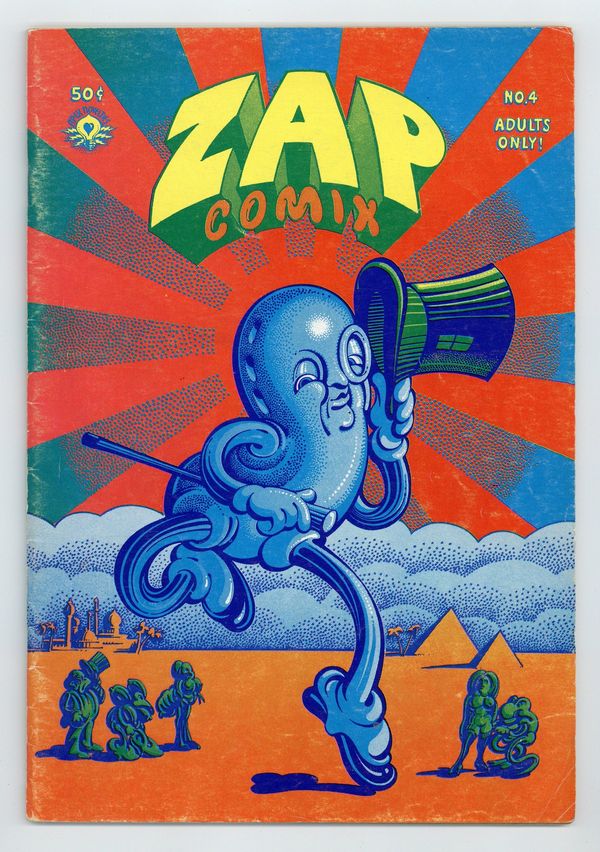 2nd printing. Victor Moscoso cover. Art and stories by Robert Williams, Robert Crumb, Spain Rodriguez, S. Clay Wilson, and a Wonder Warthog story by Gilbert Shelton. MATURE READERS. Cover price $0.50.