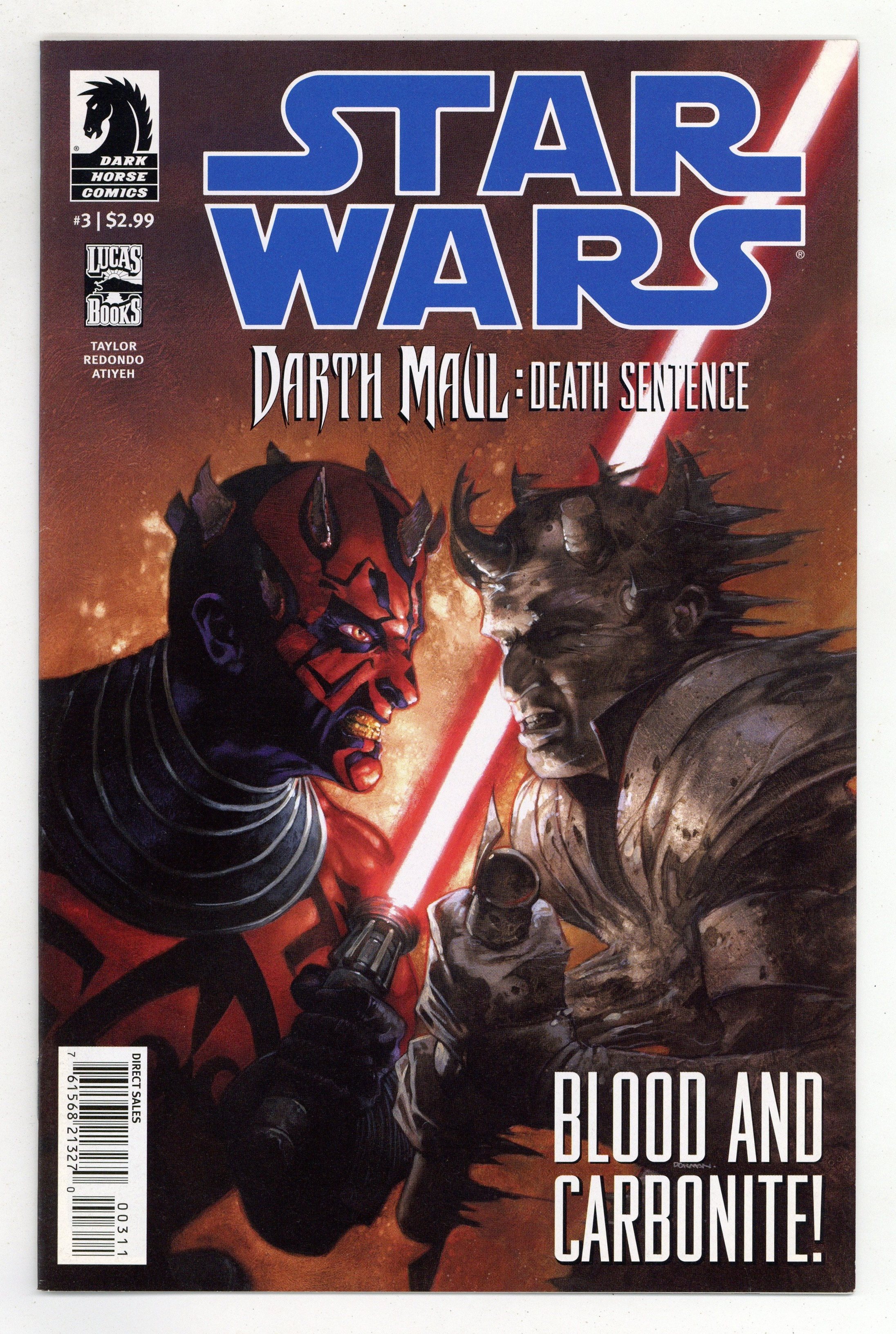 Published Sep 2012 by Dark Horse.$8.00(W) Tom Taylor (A) Bruno Redondo (CA) Dave Dorman While an injured Darth Maul recuperates from his recent battle with a team of Jedi, he plots his revenge-and the rescue of his brother Savage Opress (now in Jedi custody). But it isn't simply the Jedi that Maul must face; it's a powerful mining magnate with forces of his own! Luckily for Maul, the mine owner has made a career out of exploiting the local work force, and the natives are . . . revolting! Cover price $2.99.