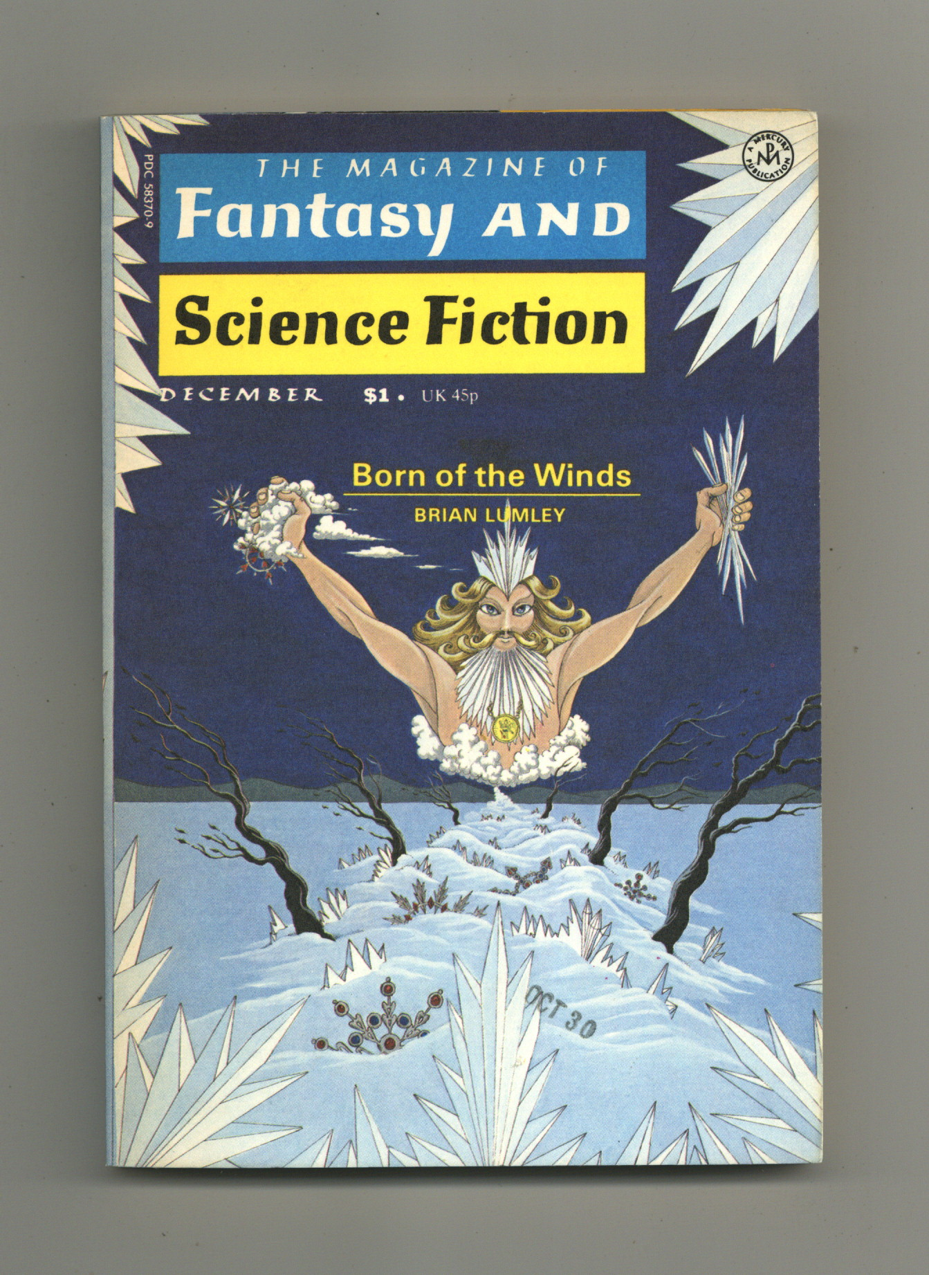 Published Dec 1975 by Mercury Publications.$38.50December 1975; whole number 295. Science fiction stories: "In the Bowl" by John Varley, "Born of the Winds" by Brian Lumley, "A Lamed Wufnik" by Mel Gilden, "In Case of Danger, Prsp the Ntxivbw" by Charles W. Runyon, "The Three of Tens" by C.L. Grant, "Exile" by Pamela Sargent, and "Shakespeare of the Apes" by Robert F. Young. Cartoon by Gahan Wilson. Science article by Isaac Asimov. Cover by Mazey & Schell. 5-in. x 7-in., black and white; 160 pages. Cover price $1.00.