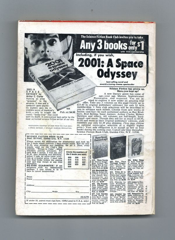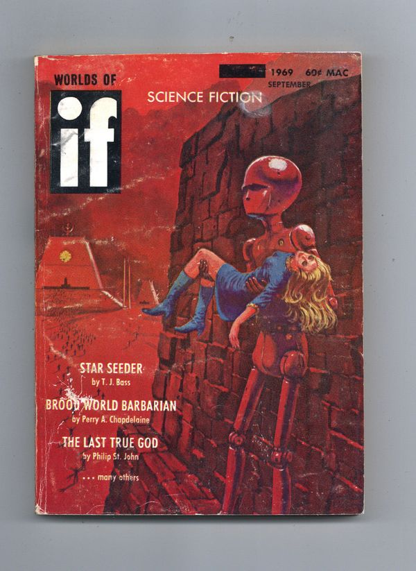 Sept 1969. Volume 19, No. 7 (Whole No. 140) Cover by Chaffee. Science fiction stories by Perry A. Chapdelaine, Clayton McCarty, T. J. Bass, Mack Reynolds' "The Towns Must Roll" Part 2 of 2, Bruce McAllister, Chelsea Quinn Yarbro, and Philip St. John. 5.25-in. x 7.5-in.; black and white; 160 newsprint pages. Cover price $0.60.