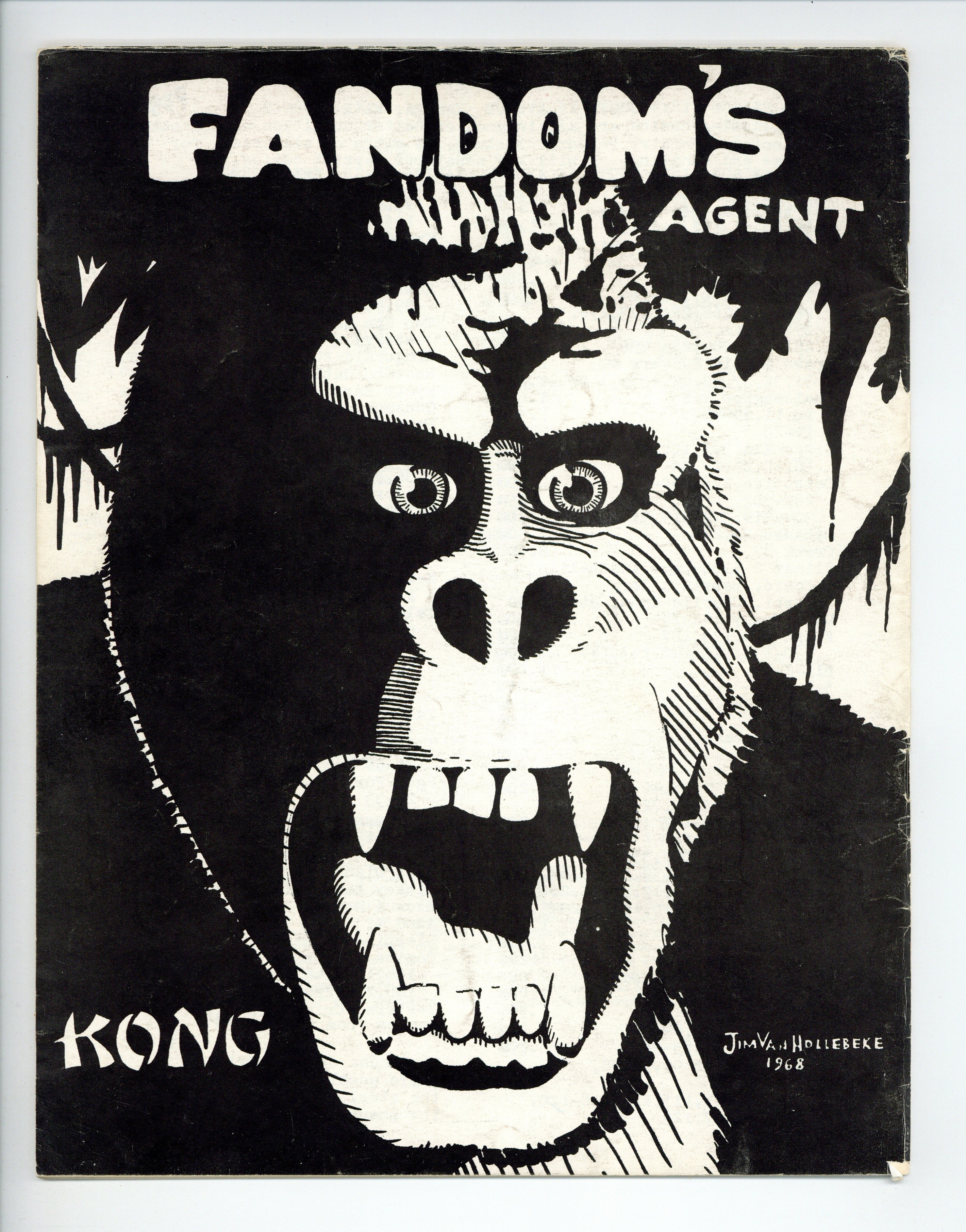 Published 1968 by No publisher listed/fanzine.$3.00Cover by Joe Salini. Published by Chuck Wooley in 1968. "A Listing Of Whitman Material" by Dale Manesis continues. Dale's installment is a very detailed alphabetical list of the Whitman BLBs from Lone Ranger 1407 to Tarzan The Terrible 1453. There are a lot of other features, including numerous fan art illos, fanzine reviews, an X-Men Quiz, reminisces from a Golden Age collector who began collecting about 1940, and more info on foreign comics. For some, the highlight is three pages of photos from the 1968 St. Louis Gateway comic book convention. Pictured are many young fans, a dealer's table with (among other comics), More Fun 52, Flash 1 and Captain America 1, plus screen captures from the movie Metropolis and the serial Curse Of The Aztec Mummy. Other pics include Roy Thomas, and shots of Marvel original art covers. "For Sale" ad highlights find Buddy Saunders (founder and owner of My Comic Shop) mentioning that "Every month I receive hundreds of comics," plus ads offering Amazing Fantasy 15 for $7.50, Avengers 1 for $2.50, and X-Men 1 for $3.00. The back cover is a dramatic full page portrait of Kong by Hollebeke. 8.5-in. x 11-in. 36 pages B&W. Cover price $0.50. Cover price $0.50.
