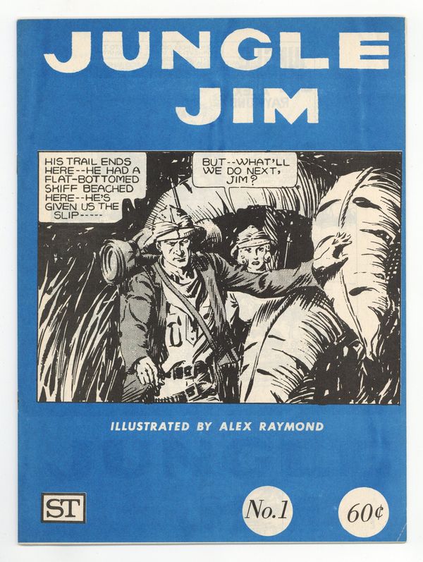 Published Aug 1972 by Street Enterprises.$2.50Story, art and cover by Alex Raymond. Street Enterprises reprints the classic Sunday adventure strip from Alex Raymond, creator of Flash Gordon. Collects the Sunday strips from July 14 through October 27, 1935. When Bruder takes Mrs. Romney's baby to a native tribe, Jim suspects an evil ritual, but Bruder actually has revenge in mind. 8-in. x 10.5-in., 32 pages, B&W. Cover price $0.60.