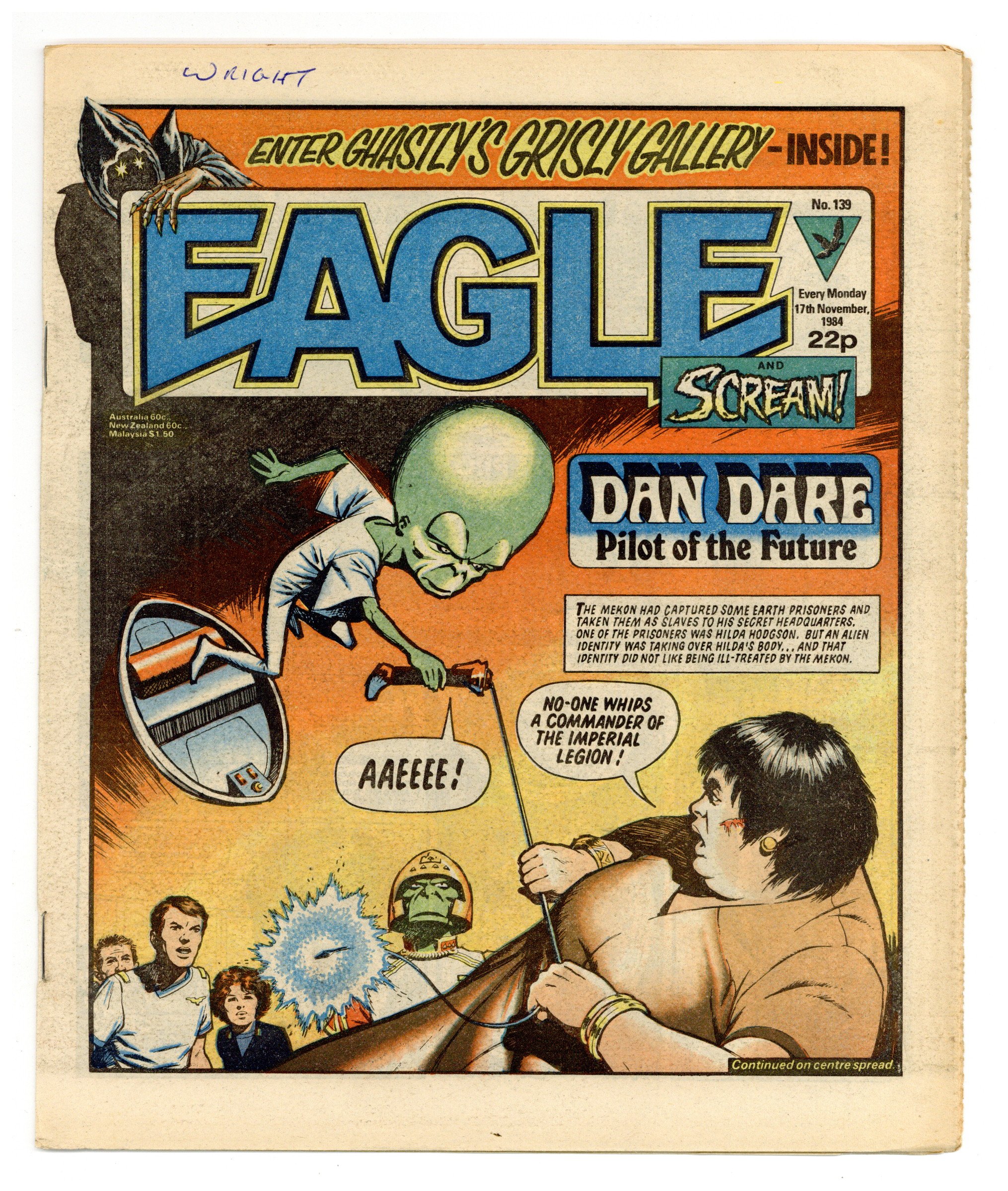 November 17th, 1984. Dan Dare, plus other features. Published in the United Kingdom, 8-1/2-in. x 11-1/2-in, 32-pages including cover, all newsprint stock. Mix of color and black/white interior.