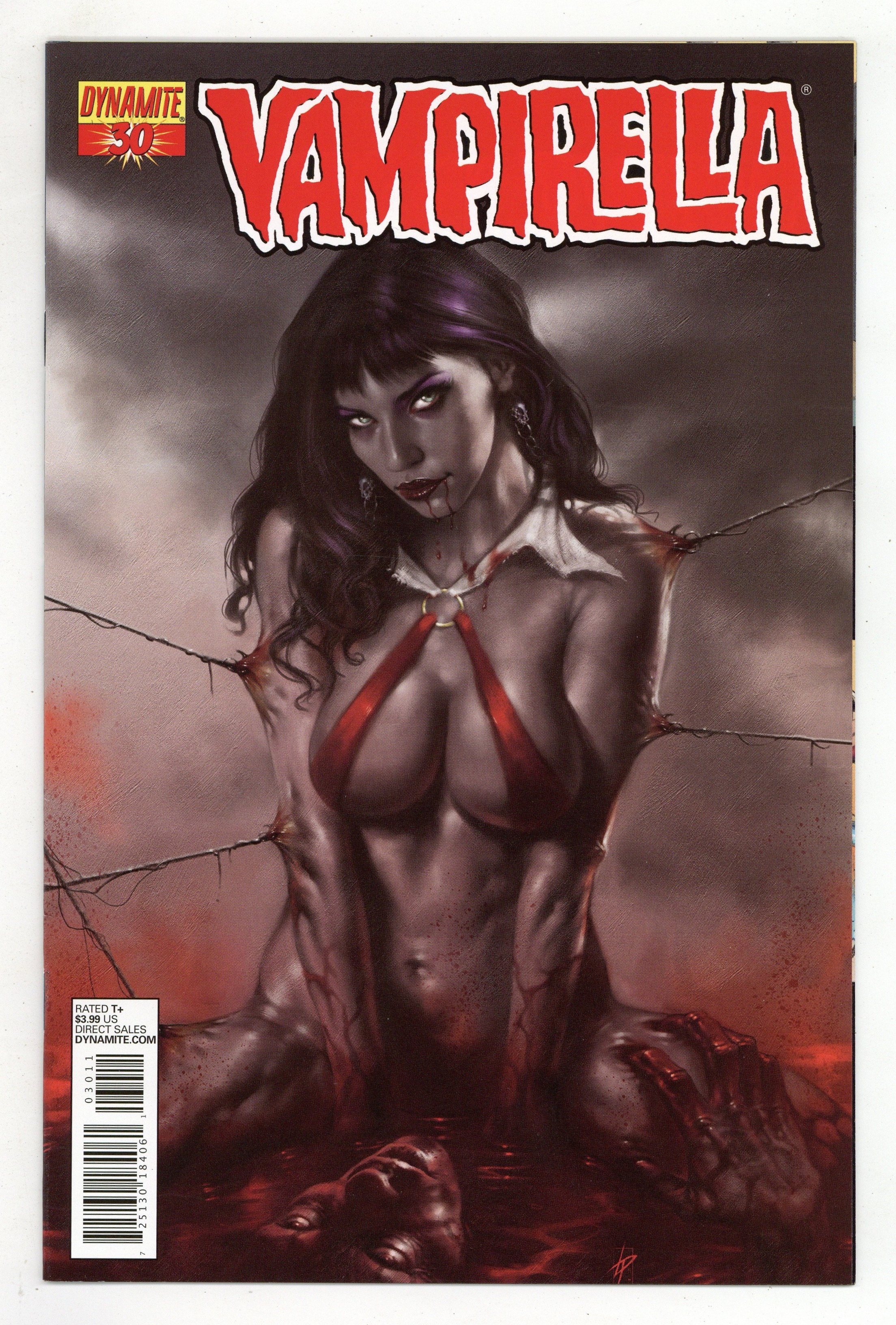 Tags: VampiresPublished Jun 2013 by Dynamite Entertainment.$35.00Cover by Lucio Parillo. Set the Controls for the Heart of the Sun: Part 2 of 3 - (W) Brandon Jerwa. (A) Patrick Berkenkotter. Vampirella and Criswell are stranded one hundred years in the future, unraveling a mystery of apocalyptic proportions. Meanwhile, in the present, their allies struggle against a deadly coven of witches whose terrible spells threaten to damage all time and reality! Cover price $3.99.