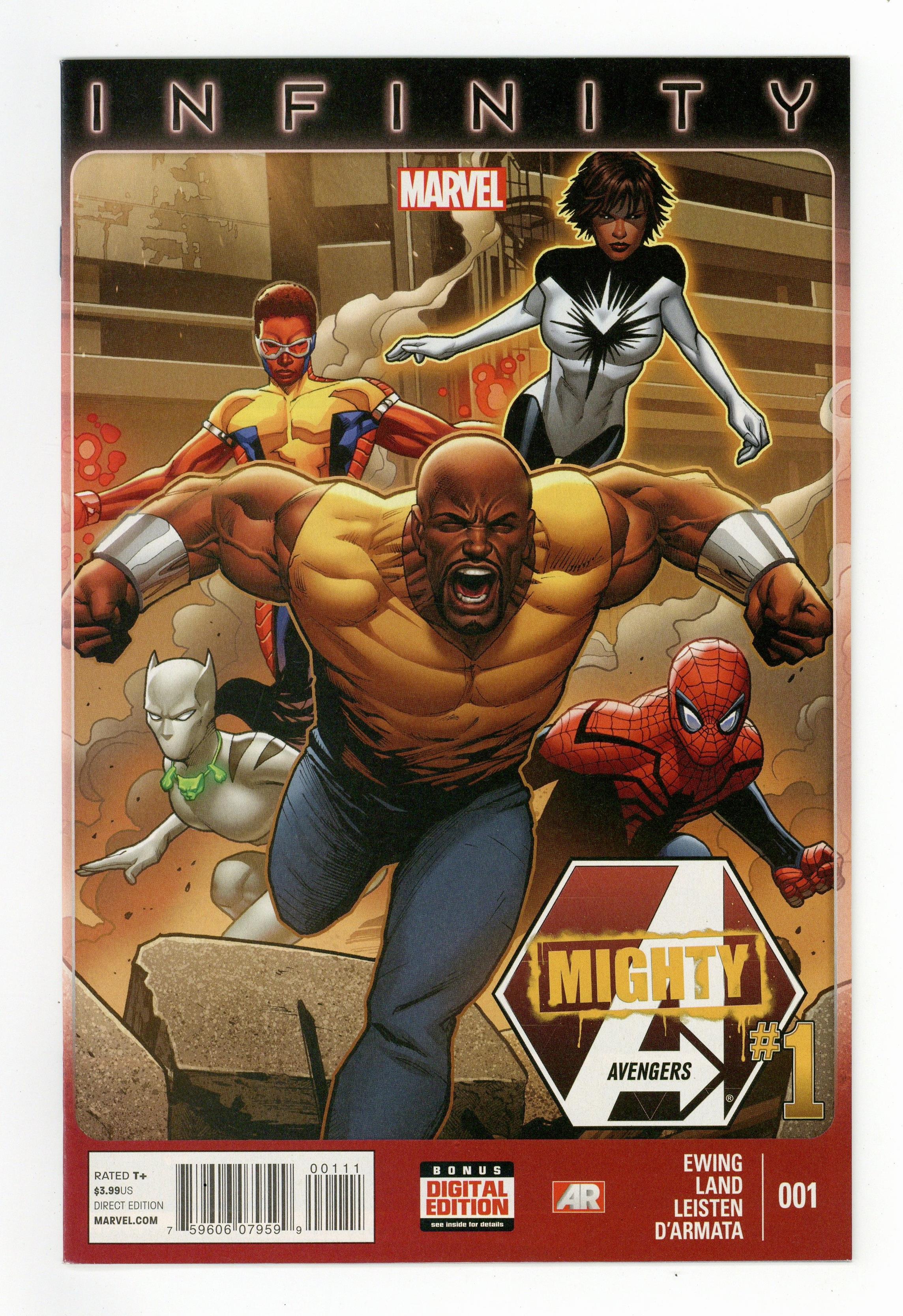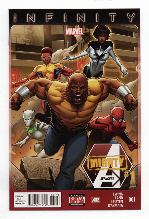 Cover by Greg Land (W) Al Ewing (A) Greg Land INFINITY TIE-IN! new ongoing series! FROM THE BATTLEFIELDS OF INFINITY COMES THE MIGHTY AVENGERS! The Avengers are light-years away in space, contending with the Builders! Thanos' marauders ransack the Earth, doing as they please! Who will stand in defense of mankind? Luke Cage! The Superior Spider-Man! Spectrum! The White Tiger! Power Man! And a mysterious figure in an ill-fitting Spider-Man Halloween costume! These unlikely heroes must assemble when no one else can-against the unrelenting attack of Proxima Midnight! Cover price $3.99.