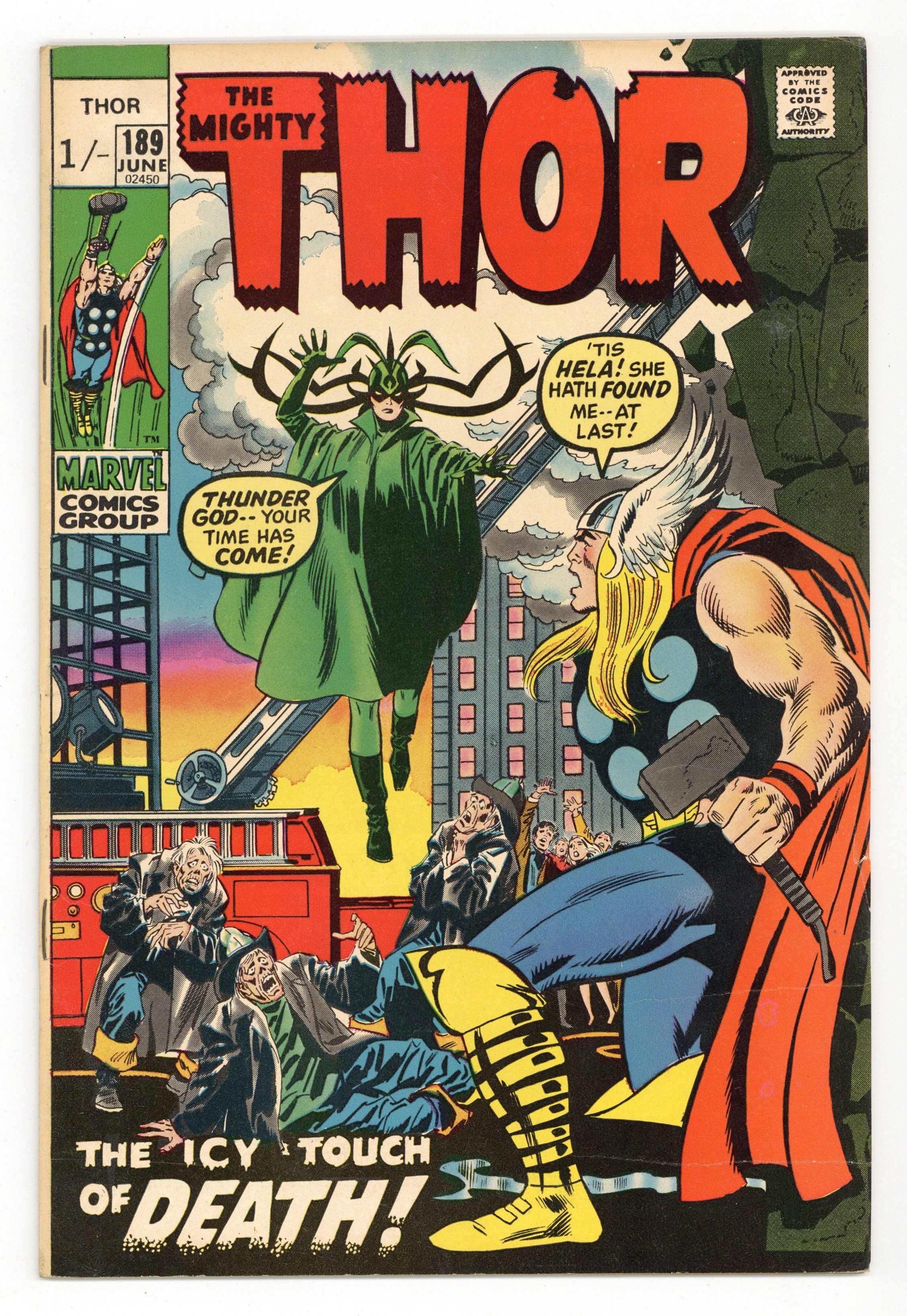 UK edition. Identical to US edition, but has 1/- cover price. Thor battles Hela in "The Icy Touch of Death!" Script by Stan Lee, pencils by John Buscema, inks by Joe Sinnott. Appearances by Sif, Balder, Hogun, Fandral, Volstagg, Karnilla, Odin, and Loki. Heimdall cameo. Buscema/Jim Mooney and Marie Severin cover.