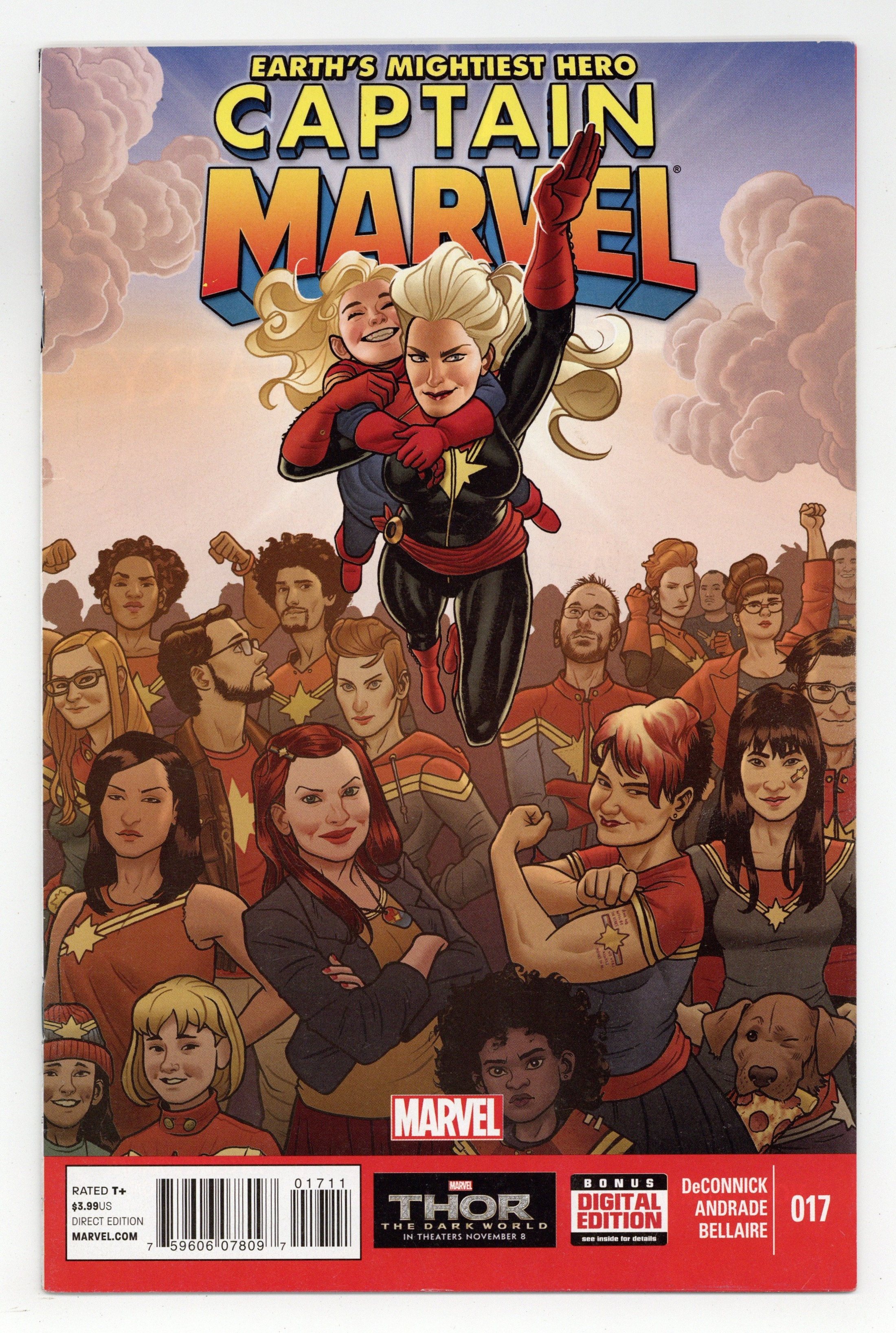Cover by Joe Quinones. (W) Kelly Sue DeConnick. (A) Filipe Andrade. THE CAROL CORPS ISSUE! THE special oversized issue to end all oversized issues! In the aftermath of Enemy Within, Carol Danvers must rebuild her memories through the eyes of her biggest fan. Find out why this is such a fan-beloved series! Cover price $3.99.