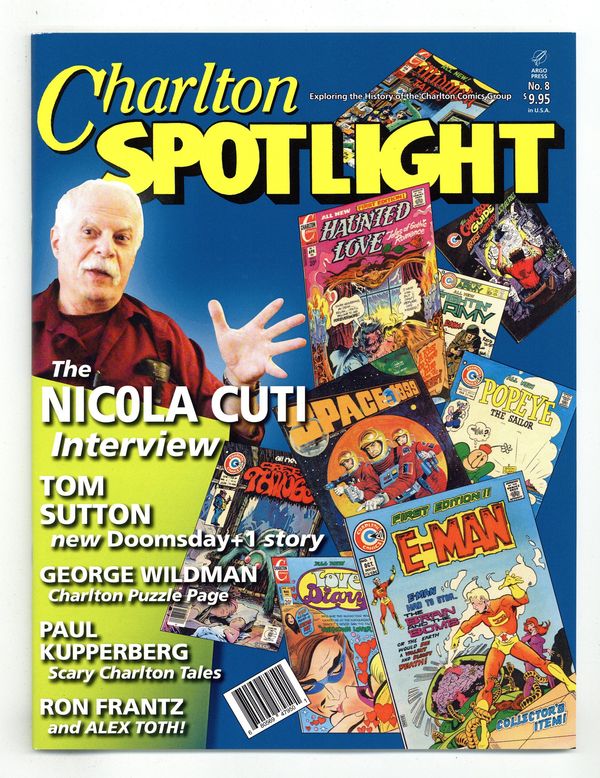 $5.00Printings may vary. This very special issue features the first full-length interview with the legendary Nicola Cuti in over a decade. The former Charlton Comics assistant editor and writer recalls working with editor George Wildman and writer Joe Gill and artists Wally Wood, Joe Staton, Steve Ditko, Tom Sutton, Wayne Howard, and many others, all liberally illustrated with rare and unpublished photos and art. Next up is a vintage Charlton Doomsday+1 story by Tom Sutton, lost for over three decades. Cover price $7.95.