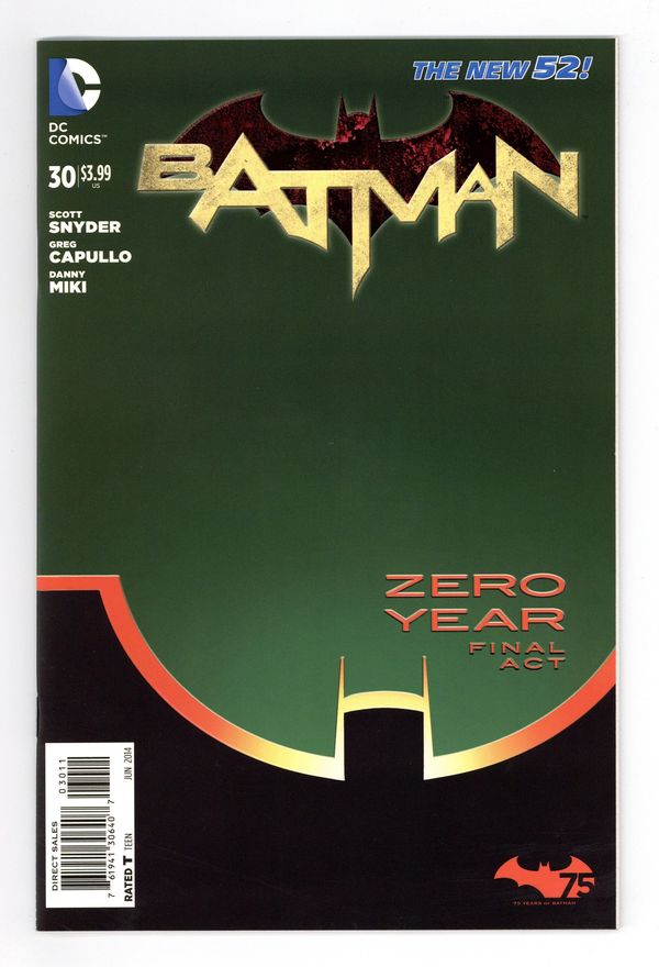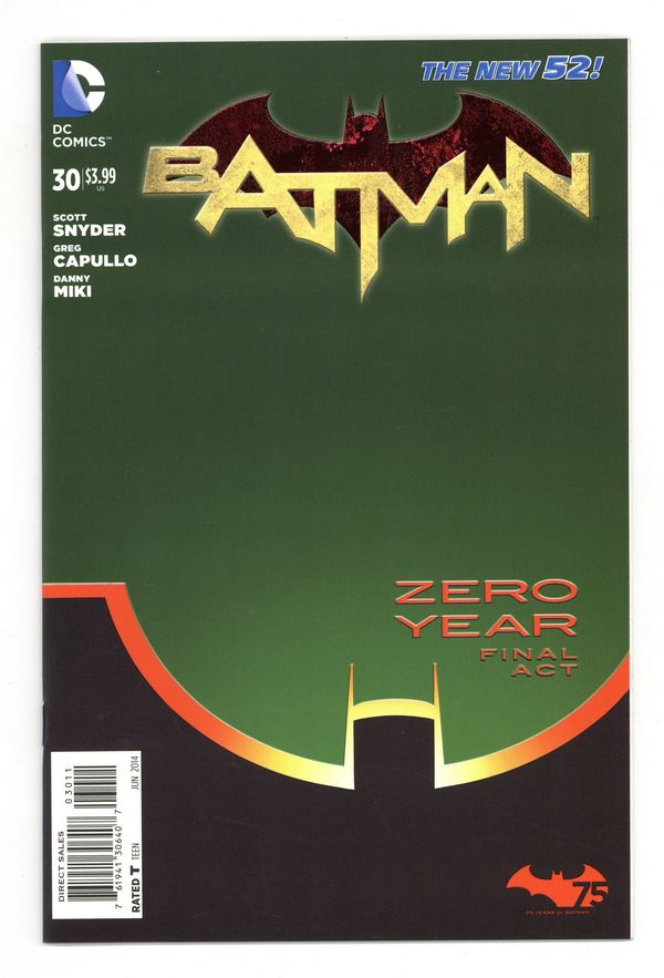 Zero Year - Savage City: Part 1 of 4 - Written by Scott Snyder. Art by Greg Capullo and Danny Miki. Cover by Greg Capullo. 'ZERO YEAR - SAVAGE CITY' begins! 32 pages, full color. Cover price $3.99.