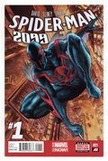 $18.00Written by Peter David. Art by Will Sliney. Cover by Simone Bianchi. ALL-NEW SERIES FROM THE PAGES OF AMAZING SPIDER-MAN! The book you have been demanding for months finally hits the stands! Miguel O'Hara is Spider-Man in the year 2099 but he's currently stuck in the year 2014. He was stranded here by his father who is the head of an evil corporation called Alchemax in 2099. But in 2014, Alechmax has just been formed and Miguel has a chance to stop its corruption before it starts! You'd think being a man out of time would make you a man without enemies, but Spider-Man 2099 is about to discover that he's not the only one hoping for a better tomorrow, one that might be ensured by The Adjustor eliminating Miguel from the time stream altogether! 28 pages, full color. Cover price $3.99.