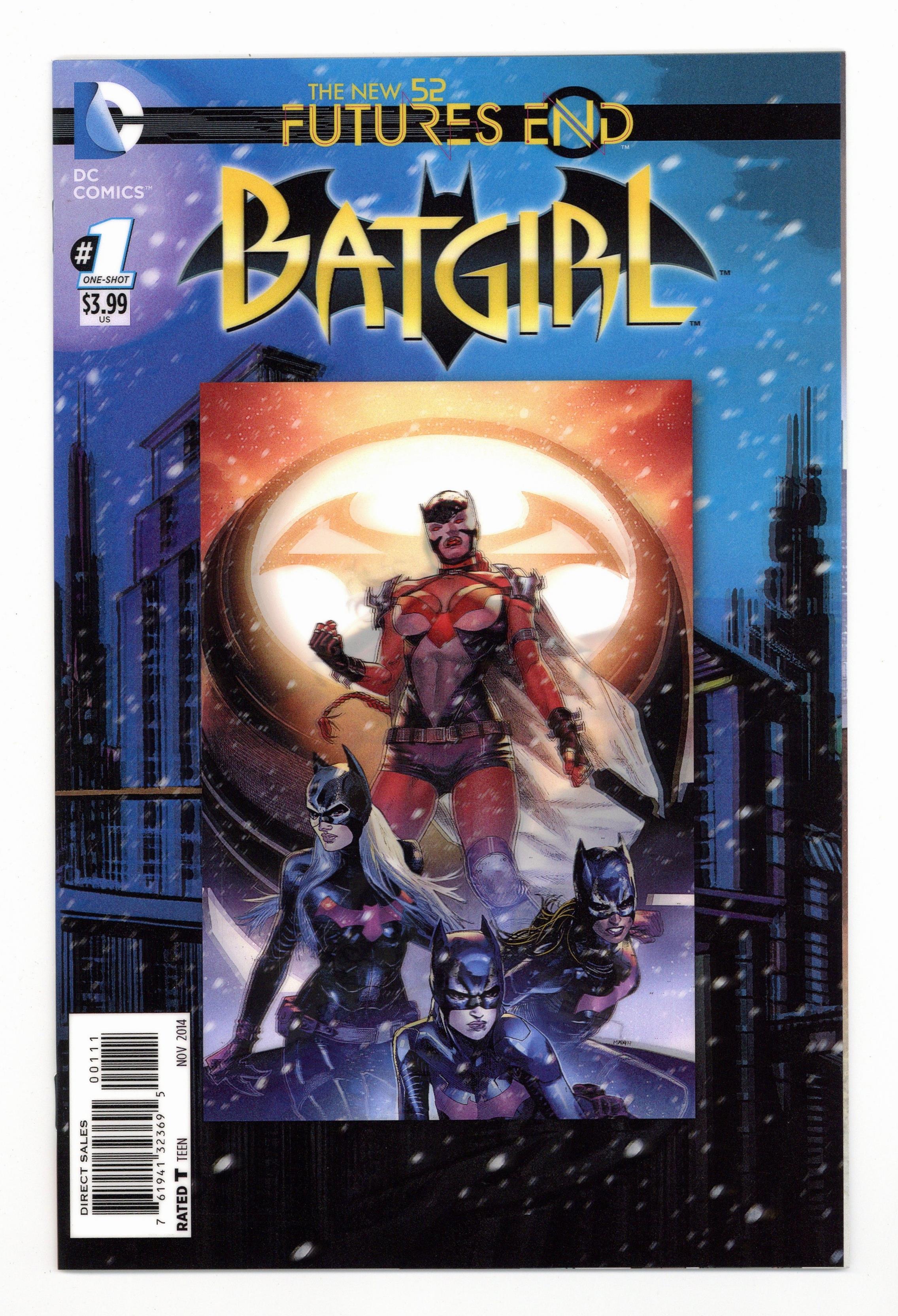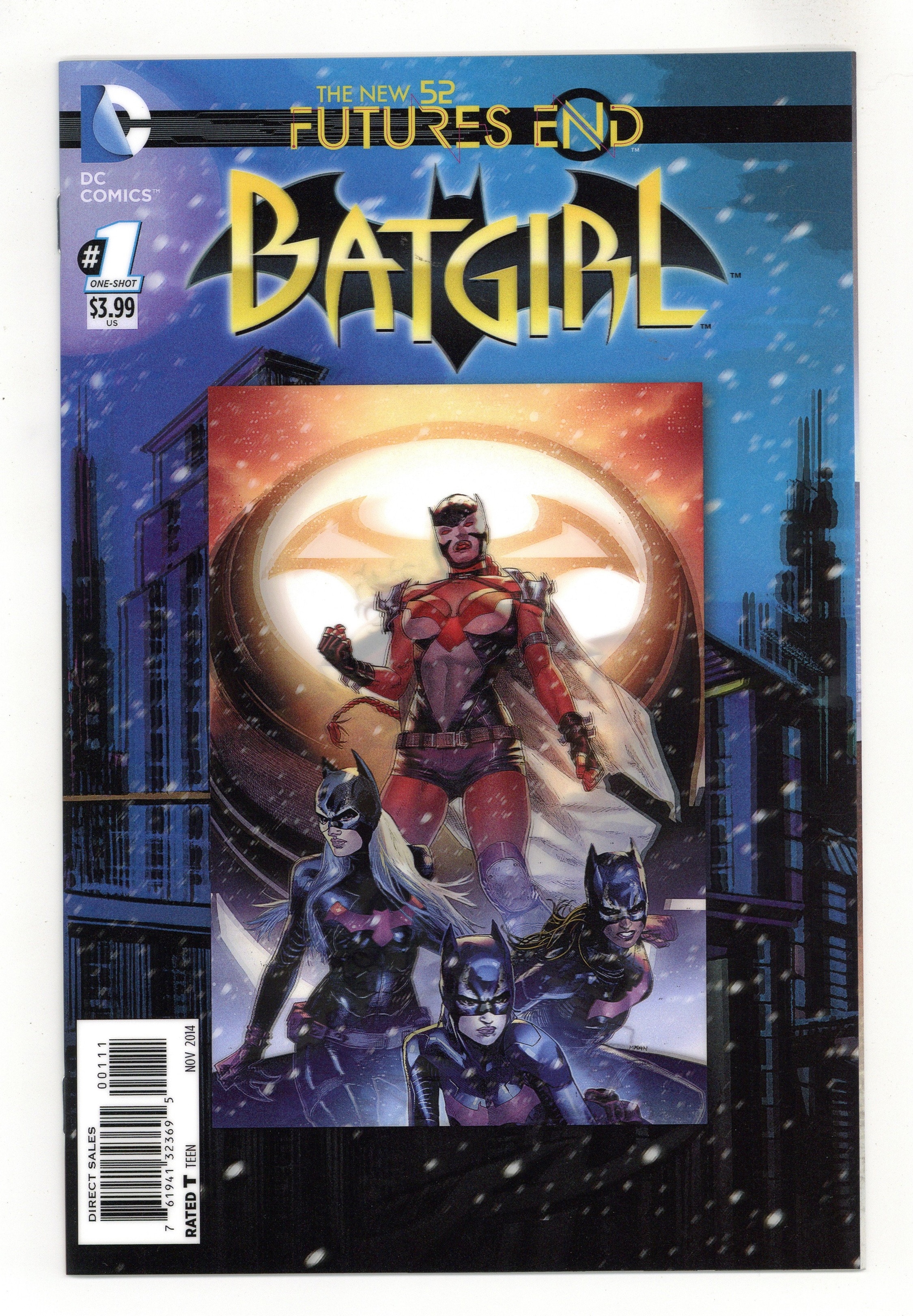 Tags: Futures End (DC)$6.003-D Lenticular cover. Written by Gail Simone. Art by Javi Garron. Cover by Clay Mann. It's five years later, and Barbara Gordon has become Bête Noire - a.k.a. The Black Beast! Part Batman and part Bane, she leads a squad of female agents through the Gotham Underground! 32 pages, full color. Cover price $3.99.