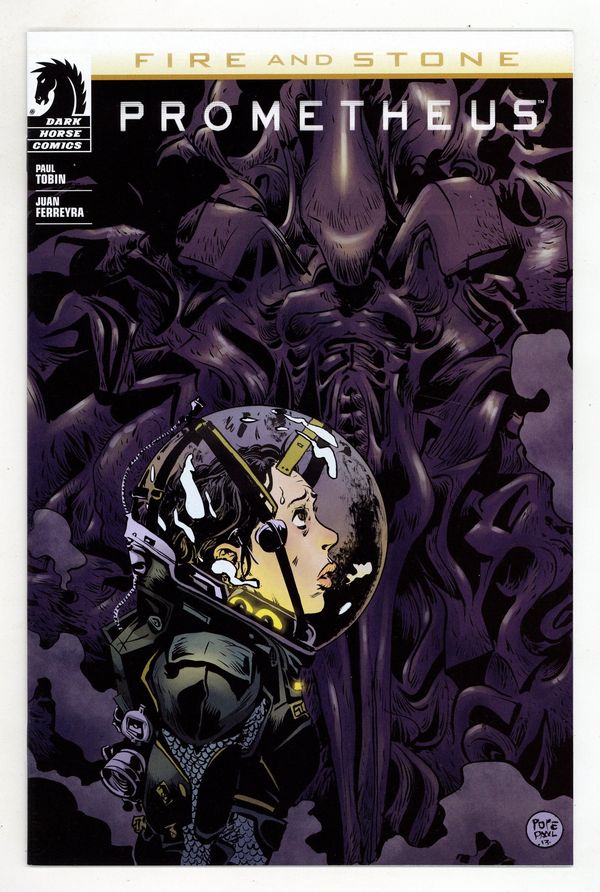 Fire and Ice Tie-In - Written by Paul Tobin. Art by Juan Ferreyra. Cover by Paul Pope. When the Prometheus never returned from her fateful journey to LV-223, the questions surrounding the origins of man went unanswered. Now a new team of explorers seeks to uncover the dark mystery that holds not only the fate of the original mission, but possibly their own damnation. 28 pages, full color. Cover price $3.50.