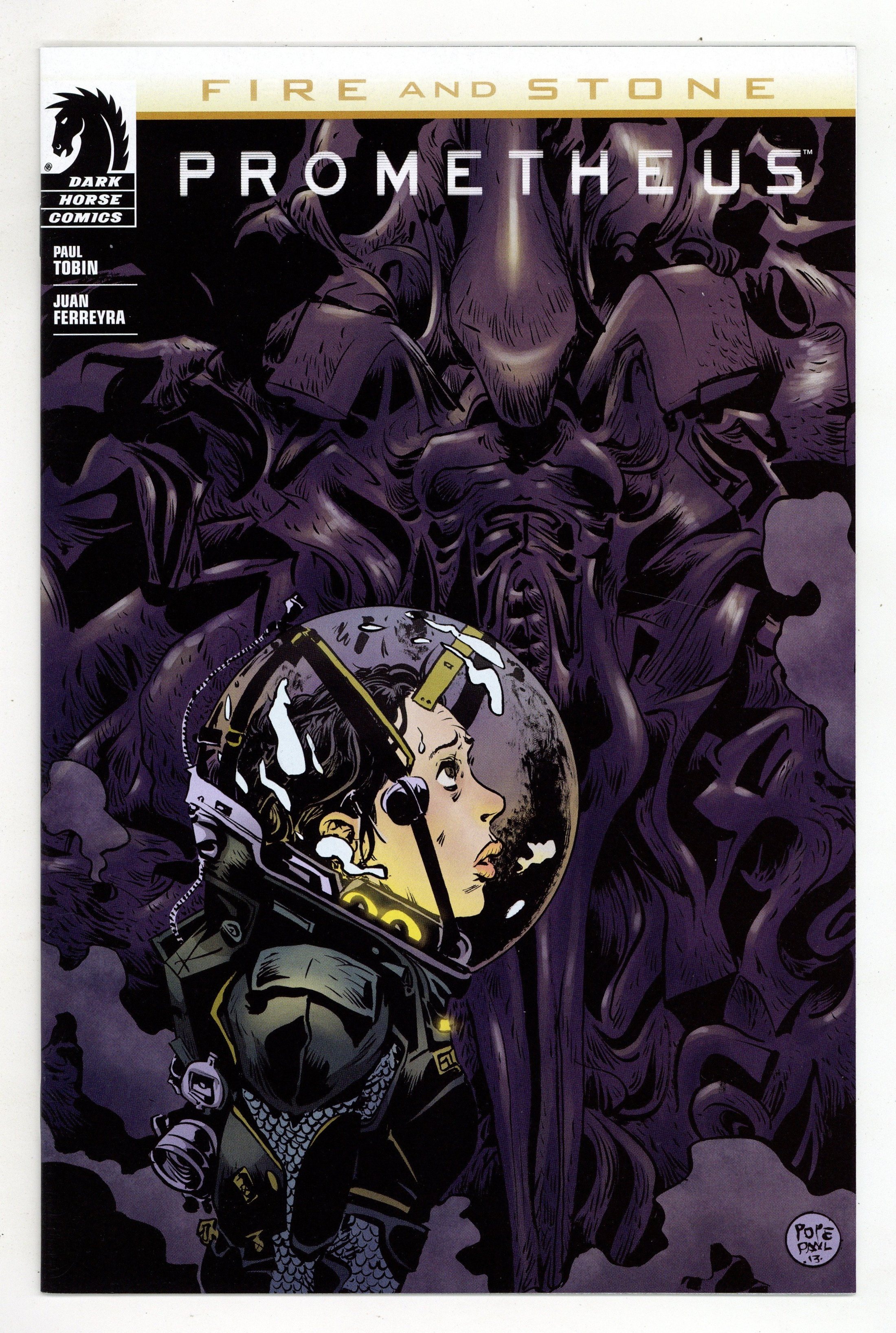 Tags: Fire and Stone (Dark Horse) (part 1), AliensPublished Sep 2014 by Dark Horse.$8.80Fire and Ice Tie-In - Written by Paul Tobin. Art by Juan Ferreyra. Cover by Paul Pope. When the Prometheus never returned from her fateful journey to LV-223, the questions surrounding the origins of man went unanswered. Now a new team of explorers seeks to uncover the dark mystery that holds not only the fate of the original mission, but possibly their own damnation. 28 pages, full color. Cover price $3.50.