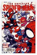 Edge of Spider-Verse: Part 1 of 10 - Written by Dan Slott and Christos N. Gage. Art by Giuseppe Camuncoli and Adam Kubert. Cover by Skottie Young. SUPERIOR SPIDER-MAN KICKS OFF THE EDGE OF SPIDER-VERSE! Extra-sized monumental issue, including a story drawn by living legend ADAM KUBERT! How is the Superior Spider-Man still around? Where is he? What is he doing? The road to SPIDER-VERSE STARTS HERE! 36 pages, full color. Cover price $4.99.