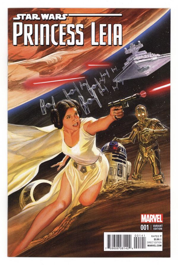 Tags: Star Wars$35.00Limited 1 for 50 Retailer Incentive Variant Cover. Written by Mark Waid. Art by Terry Dodson. Cover by Alex Ross. When Princess Leia Organa was captured by the Empire as a Rebel spy, she never betrayed her convictions, even in the face of the complete destruction of her home world, Alderaan. When her rescue came, she grabbed a blaster and joined the fight, escaping back to the Rebel Alliance and helping strike the biggest blow against the Empire-the destruction of the Death Star. But in the aftermath of that victory, the question remains...what is a princess without a world? 28 pages, full color. Rated T Cover price $3.99.