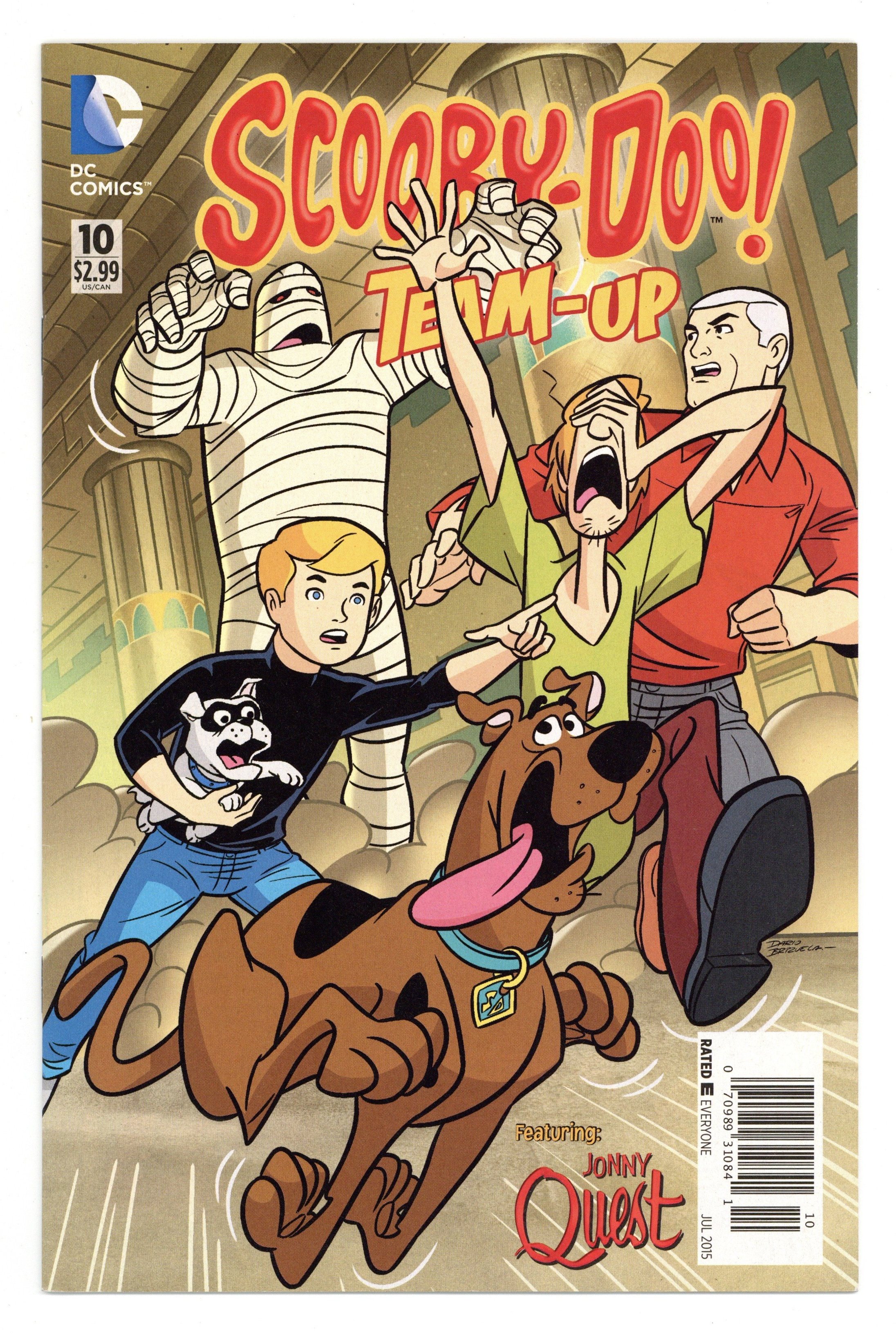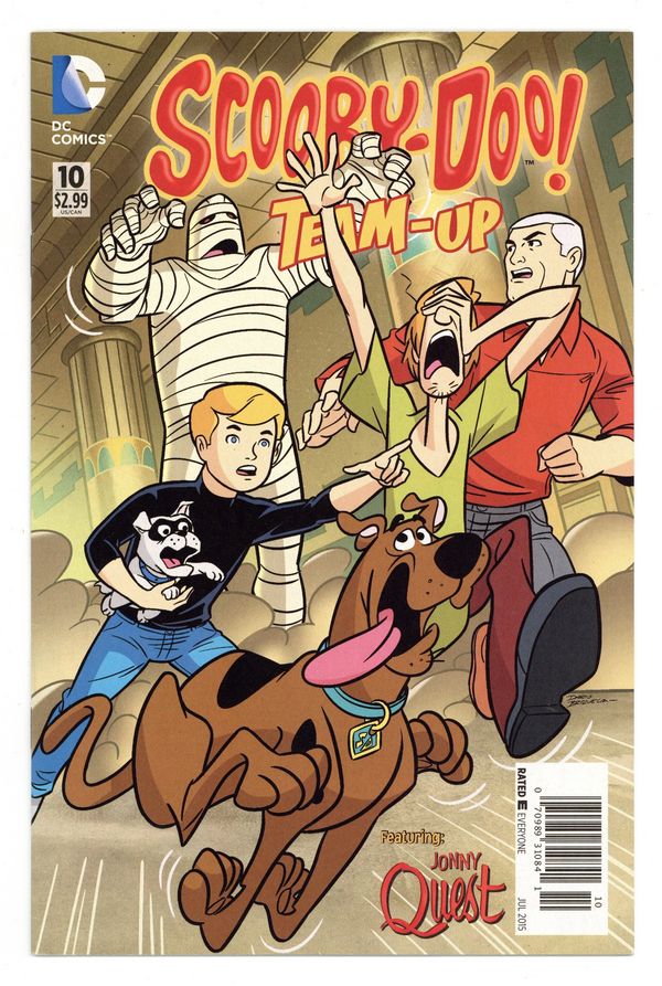 Written by Sholly Fisch. Art and Cover by Dario Brizuela. A cursed gem? A living mummy? They're just the things to bring Scooby and the gang on the run - and pique the curiosity of Dr. Benton Quest. But when the 'mummy' kidnaps Dr. Quest, the gang will have to team up with Quest's son Jonny and his friends Race, Hadji, and Bandit to rescue the famed scientist! 28 pages, full color. All Ages Cover price $2.99.