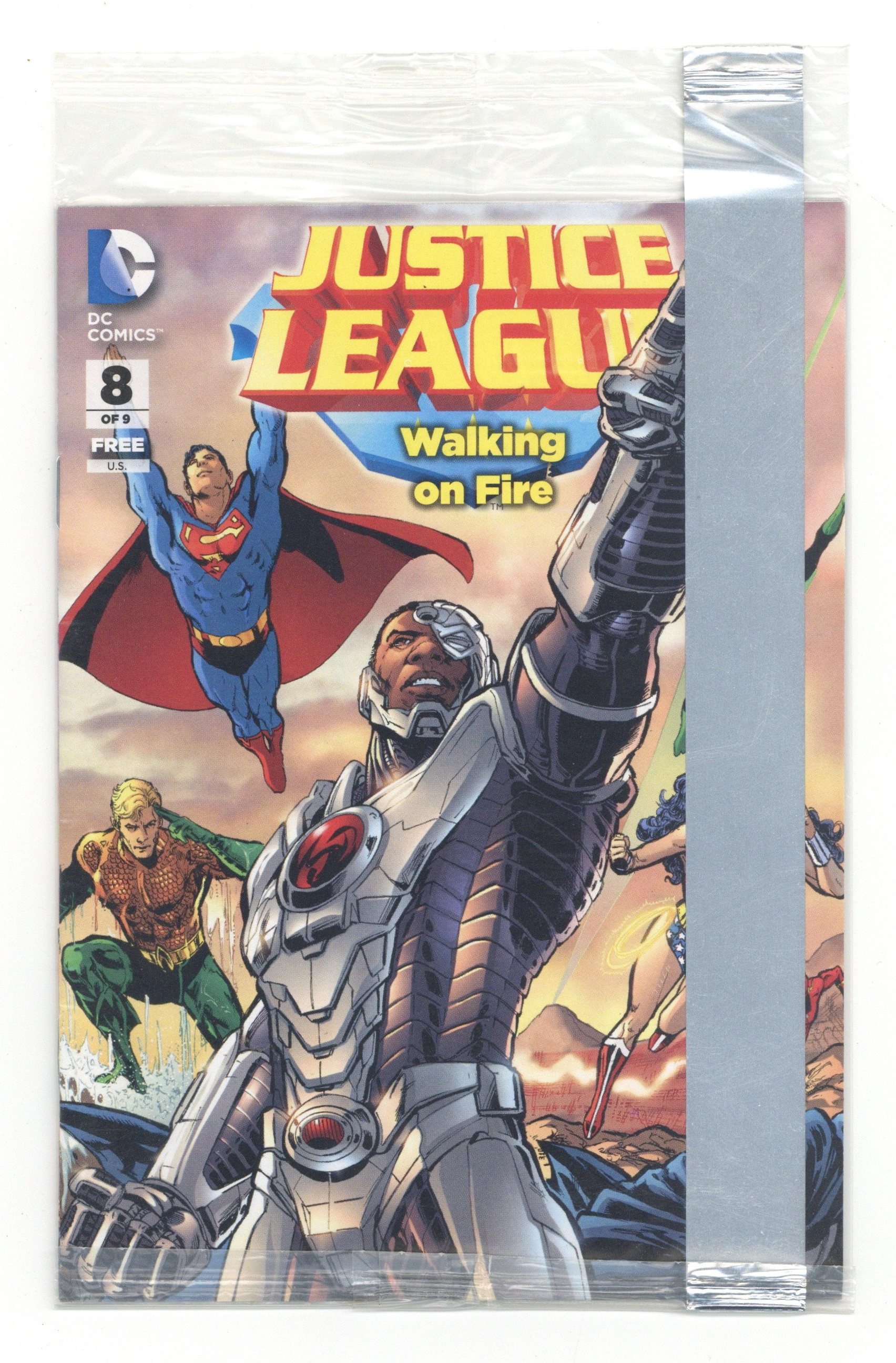 Polybagged Edition "Walking on Fire" This promotional Justice League comic was packaged inside specially marked boxes of General Mills cereals. 5"x7" FC. Comic is still in original poly bag.