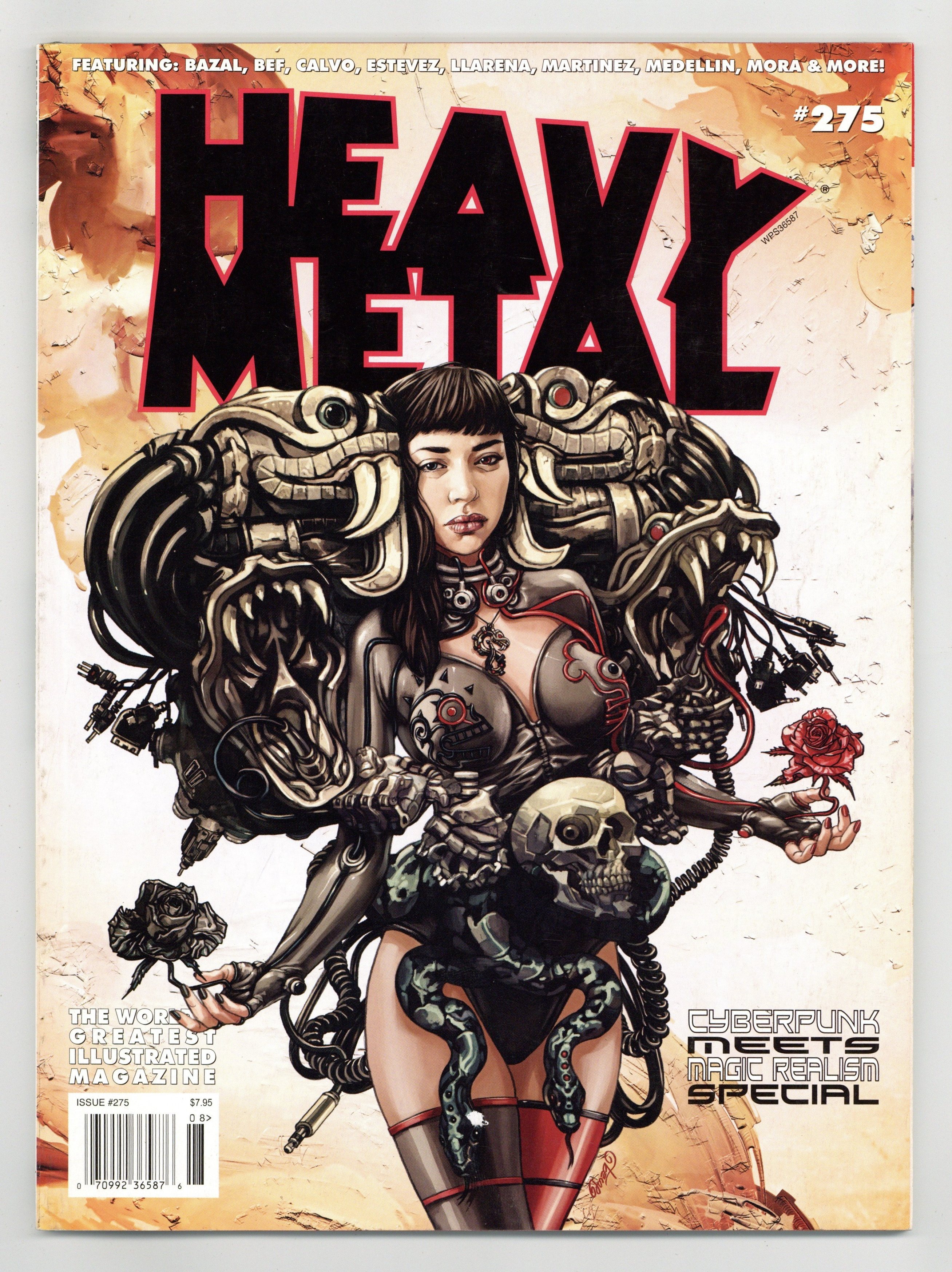 Published 2015 (est.) by HM Communications.$13.00Cover by Jose Quintero. Heavy Metal is heating up as guest editor R.G. Llarena presents the 'Cyberpunk Meets Magic Realism' summer special! R.G. brings a volcanic team of talent to the table to kick the party season into high gear! Featuring Oscar Bazal, Bef, Alberto Calvo, Omar Estévez, Abraham Martínez, Axel Medellín, Moramike and much more! No time for a siesta, Heavy Metal is rockin' the summertime fiesta! 112 pages, full color. Cover price $7.95.
