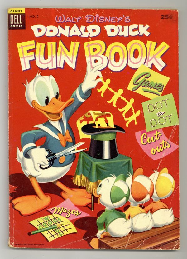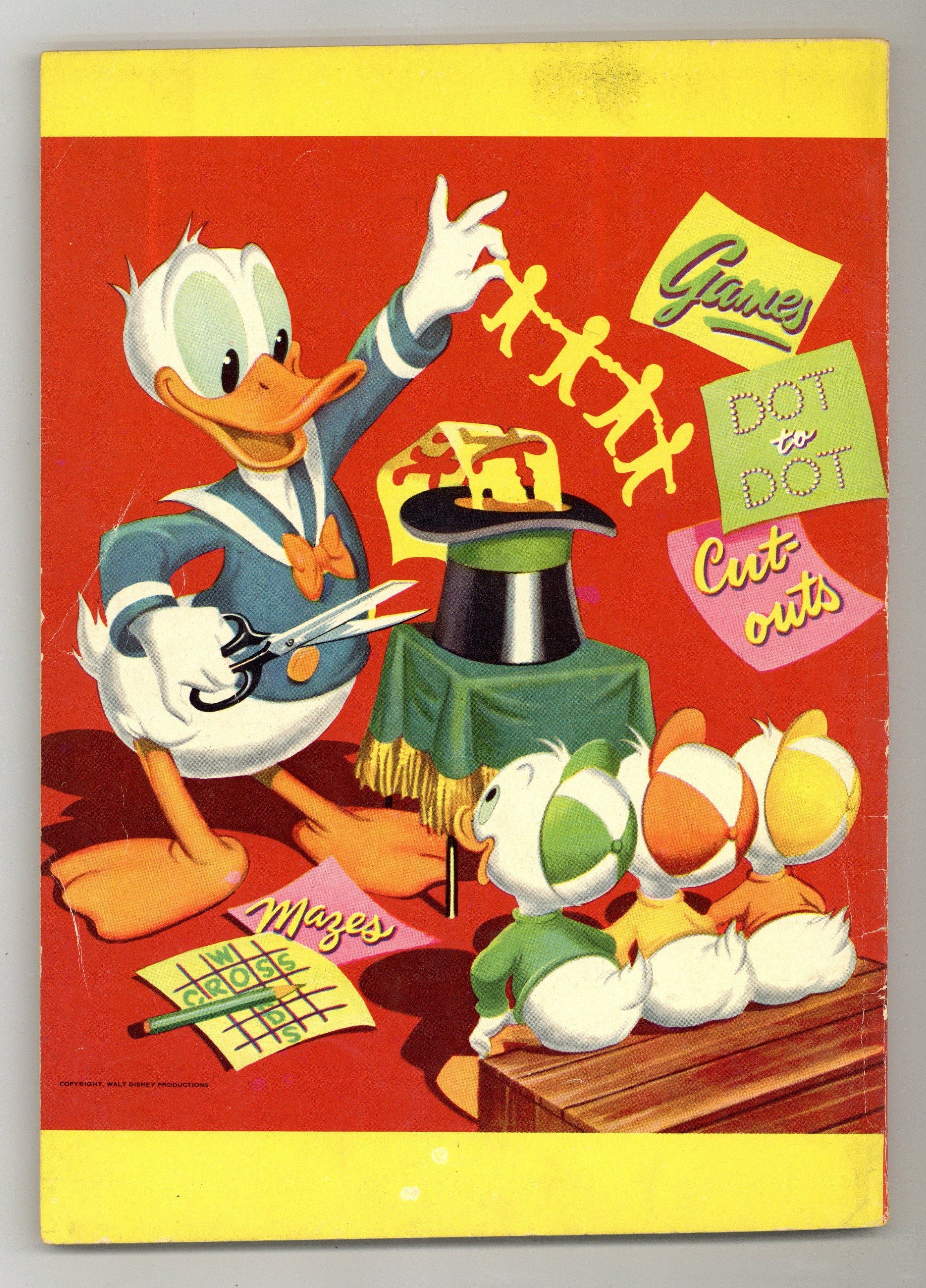 Giant comic of games and puzzles and three comic stories. The comic stories are: Donald Duck in "Bird Watchers" and an untitled story, and Huey, Dewey & Louie in an untitled story. Most of the comic is puzzles, games, dots-to-dots, mazes, crossword puzzles, and cut-outs. Back cover is pinup of front cover illustration. Story and art credits: unknown. 100 Pages, Full Color. Cover price $0.25.