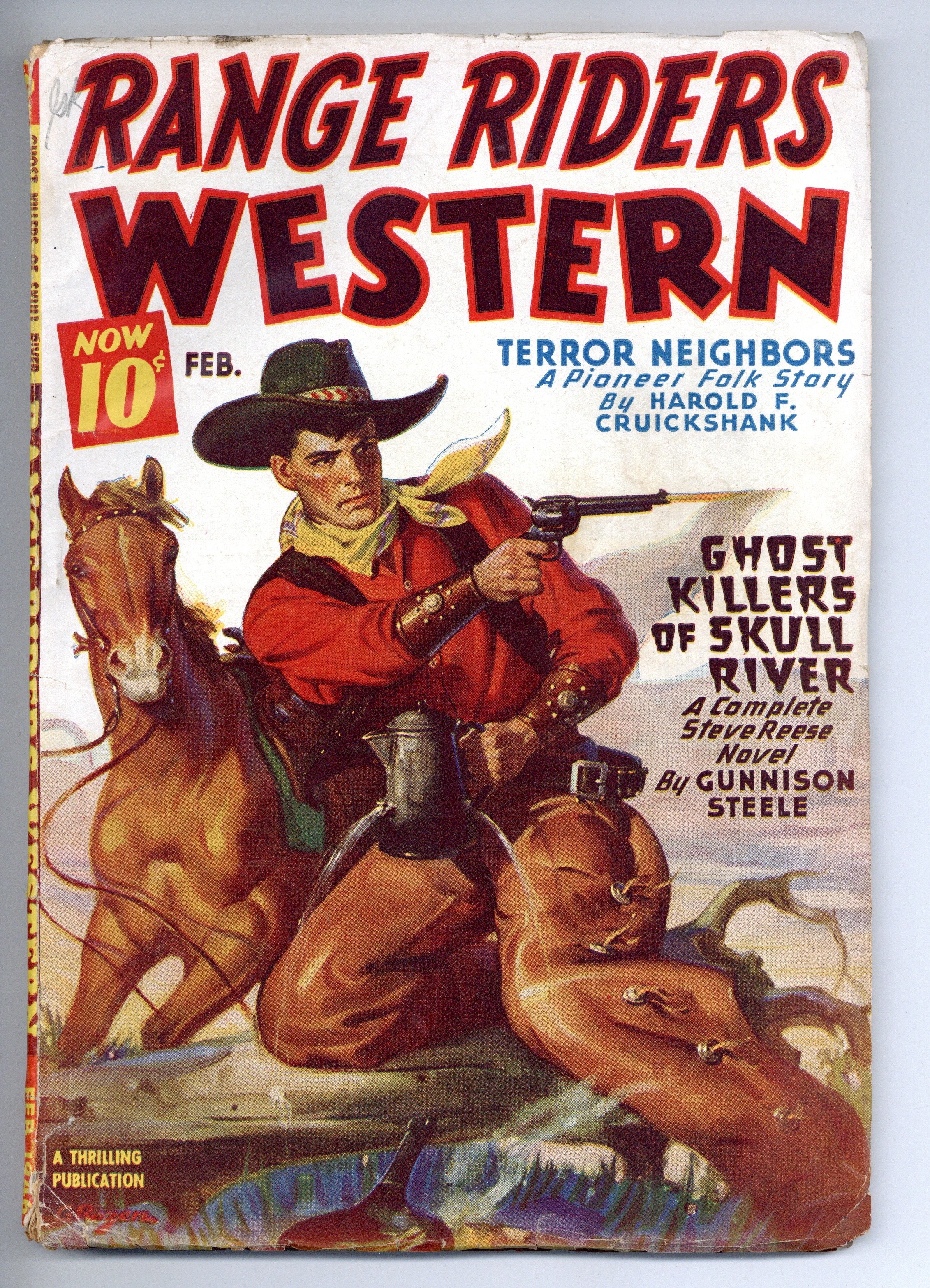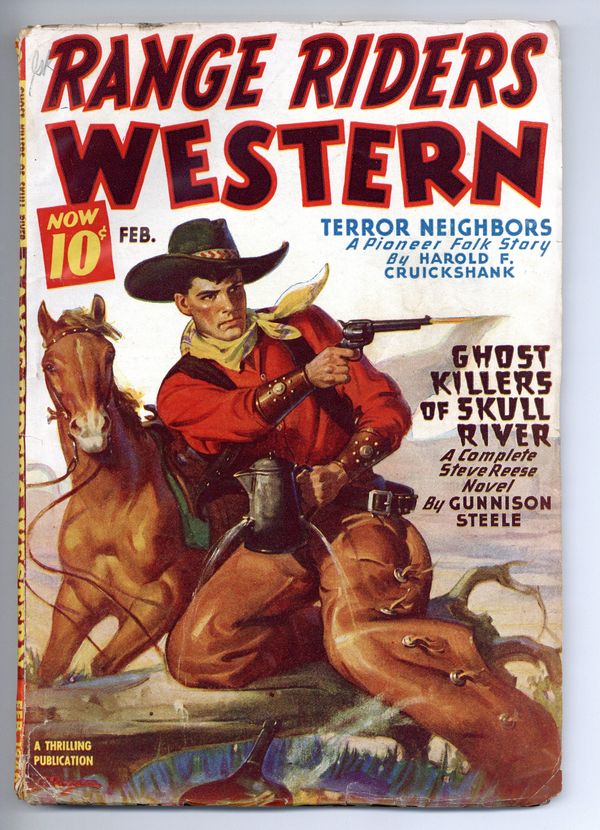 February 1946. Cover by George Rozen. "Ghost Killers of Skull River" by Gunnison Steele, and "Terror Neighbors" by Harold F. Cruickshank. 7-in. x 10-in., 96 pages, B&W Cover price $0.10.