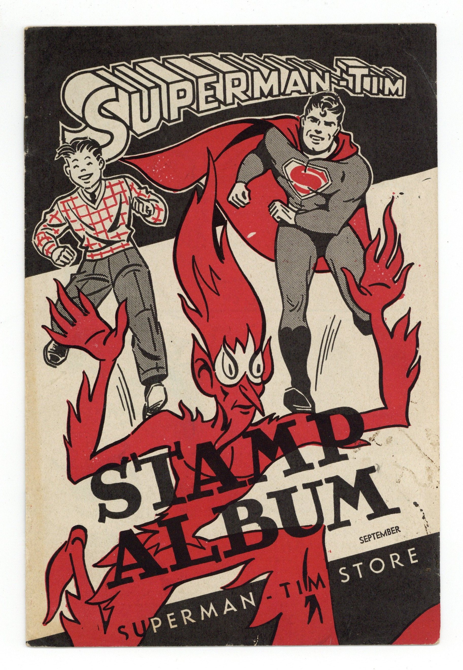 Tags: SupermanPublished Sep 1945 by Tim's Official Store.$65.00- One of Twelve monthly stamps pasted in interior. Interior activity completed.