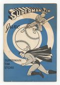 #55 in a series of 90. Superman-Tim is a boys' clothing catalog, activity book, and comic book all rolled into one, featuring Superman illustrations throughout. All issues are 16 pages unless a Superman story is inserted (bringing page count to 24 or 36 pages). Every issue encourages boys not to be a "Whoo-Shoo" -- a boy who reads "Superman-Tim" but doesn't buy clothes from the Superman-Tim Store. Copyright 1947 by National Comics Pub., Inc., under license to Tim Promotions, Inc. B&W with a single color, 5 1/2 in. x 8 in.