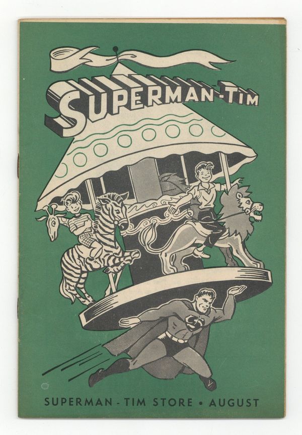 #57 in a series of 90. Superman-Tim is a boys' clothing catalog, activity book, and comic book all rolled into one, featuring Superman illustrations throughout. All issues are 16 pages unless a Superman story is inserted (bringing page count to 24 or 36 pages). Every issue encourages boys not to be a "Whoo-Shoo" -- a boy who reads "Superman-Tim" but doesn't buy clothes from the Superman-Tim Store. This issue features Superman and Tim in a 16 page comic adventure entitled, "The Adventure of the Sea of the Serpent." Copyright 1947 by National Comics Pub., Inc., under license to Tim Promotions, Inc. B&W with a single color, 5 1/2 in. x 8 in.