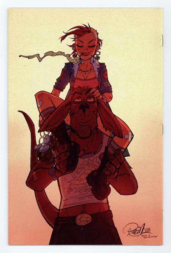 Published Aug 2015 by Titan Comics.$34.00Written by Alan Martin. Art by Brett Parson, Jamie Hewlett, Philip Bond, Jonathan Edwards and Jim Mahfood. Cover by Brett Parson. Make way for the Tank Girl of the new millenium! after a break of 20 years, artist extraordinaire Jamie Hewlett (GORILLAZ) is leaping back on the Tank Girl wagon, re-teaming with series co-creator Alan Martin to bring you a whole new take on the foul-mouthed, gun toting, swill-swigging hellion! Bulging with spanking new strips, pin-ups, poems and plenty of riotous 100% original content from Hewlett, Martin and a whole host of Tank Girl contributors - both old and new - get your head down, eyes open, and loins sufficiently girded for the second issue of this scatter-brained new series! 28 pages, full color. Mature Readers Cover price $3.99.