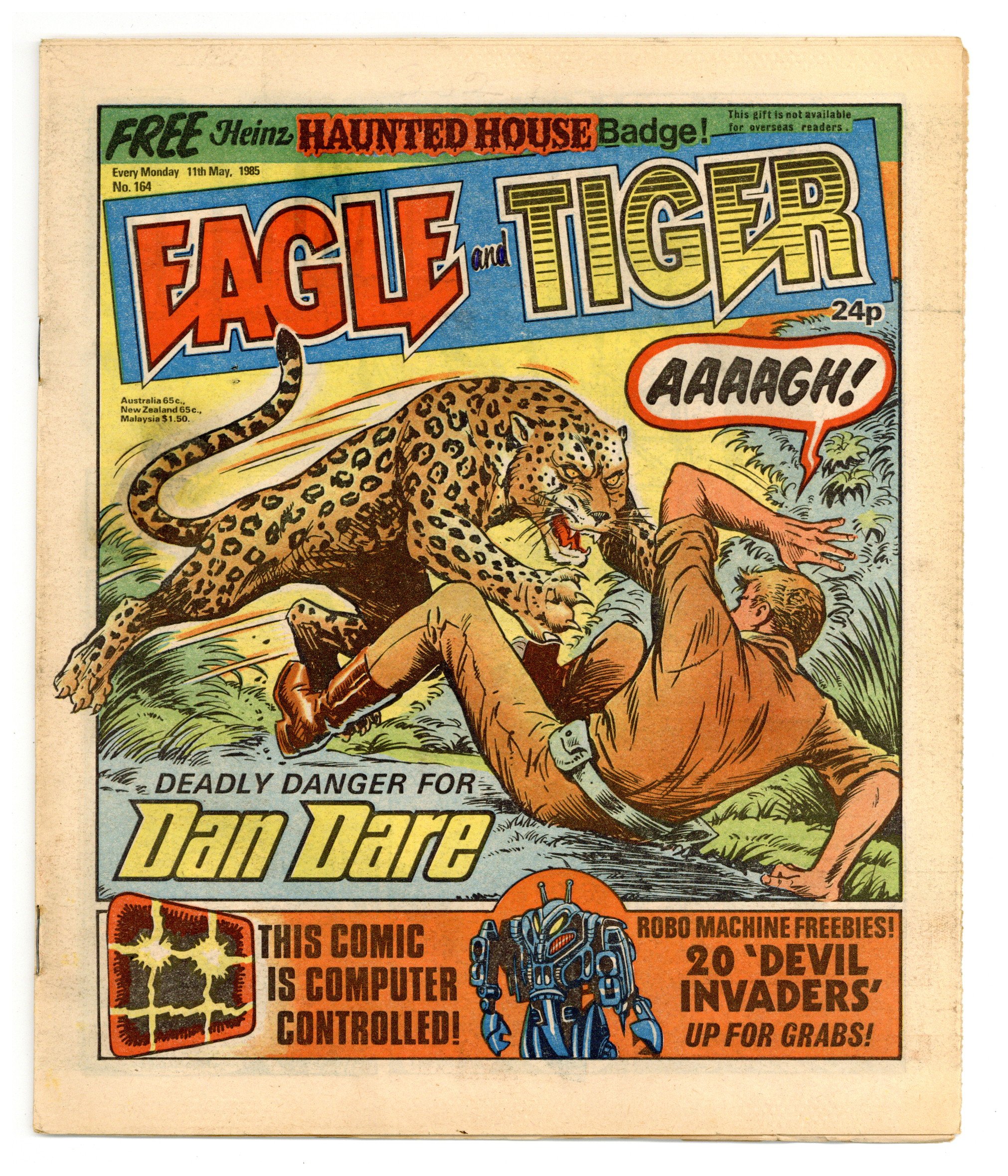 Published May 1985 by IPC Magazines.$6.00Dan Dare, plus other features. Published in the United Kingdom, 8-1/2-in. x 11-1/2-in, 28-pages including cover, all newsprint stock. Mix of color and black/white interior.