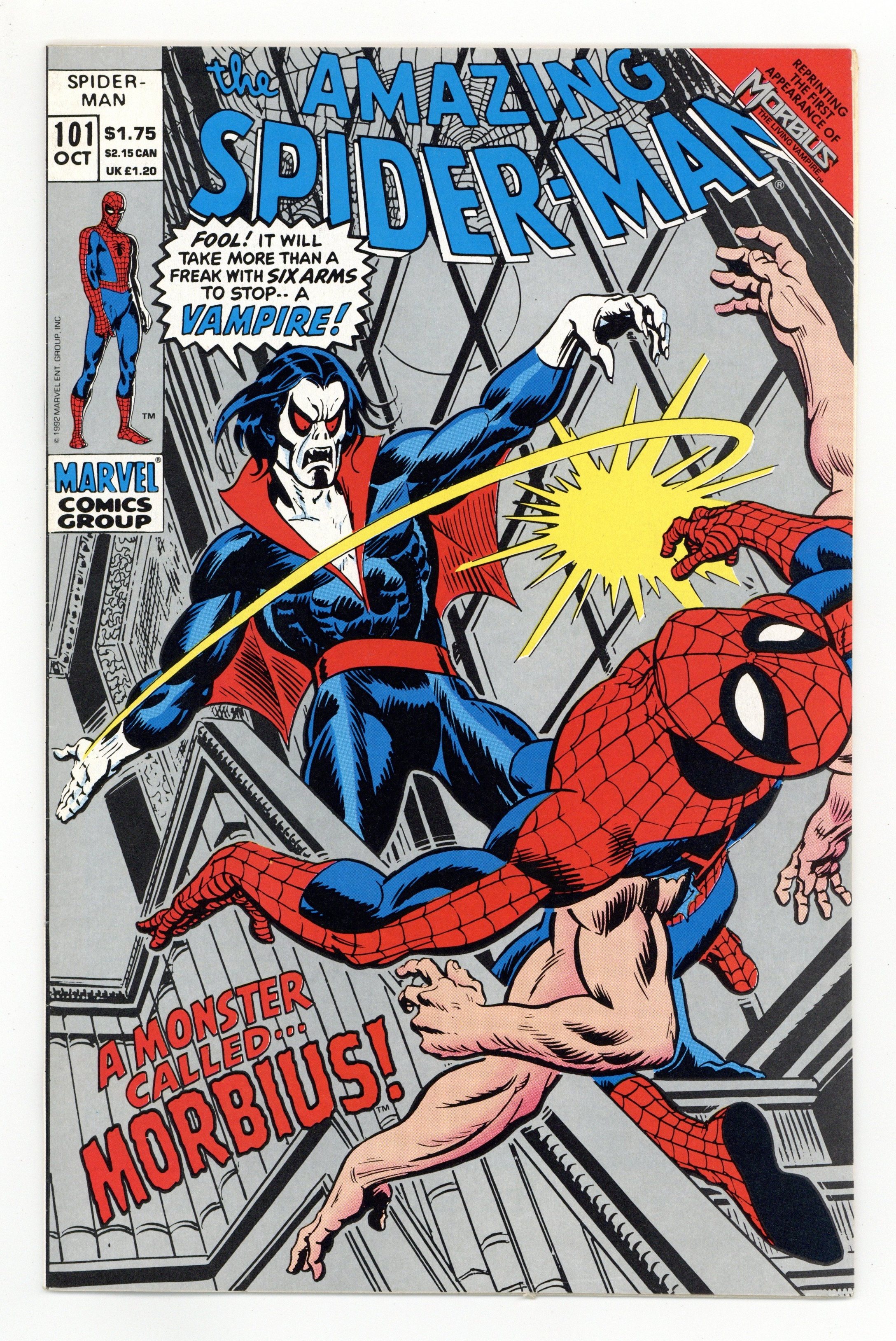 $15.001st appearance of Morbius. 2nd printing has silver background color. 36 pgs. Cover price $1.75.