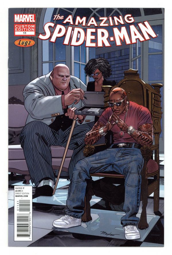 Lugz Custom Variant Cover by Mike Mayhew. Written by Dan Slott. Art by Olivier Coipel. SPIDER-VERSE PART 3! AMAZING SPIDER-MAN VS. SUPERIOR SPIDER-MAN! The Spider-Army doesn't have time for this squabbling as the Inheritors tighten their noose. 32 pages, full color. Rated T Cover price $3.99.