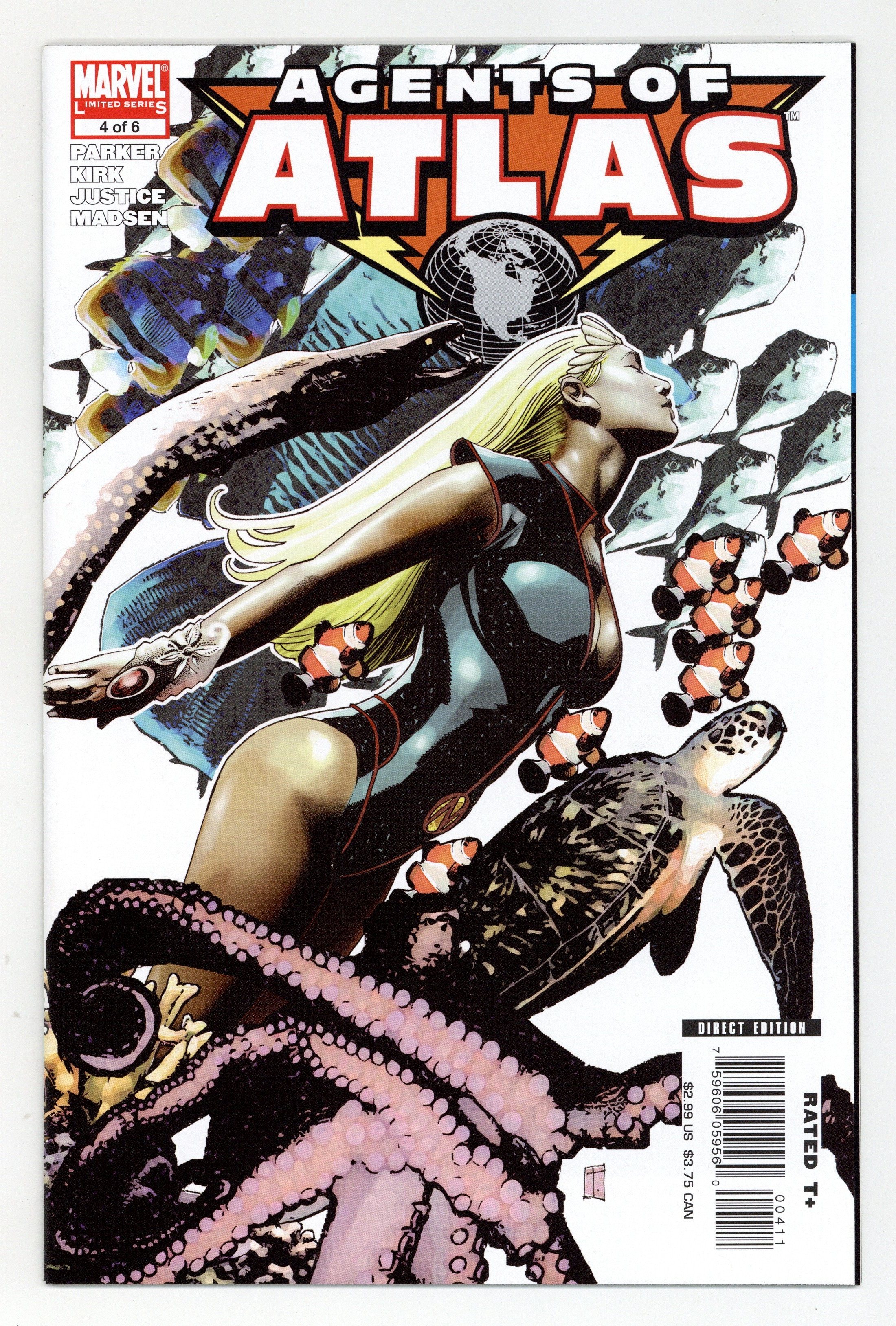 Written by JEFF PARKER. Penciled by LEONARD KIRK. Cover by TOMM COKER. 'Most of us don't realize when we're experiencing pivotal history...Today I did. I knew I was witnessing the return of a legend. ' - S.H.I.E.L.D. Subdirector Derek Khanata, from his report on NAMORA. The Sea Monarch joins the AGENTS OF ATLAS as they take on an evil that looks to be deeper than the ocean itself! 32 PGS./Rated T+ Cover price $2.99.