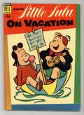 Four Color reprints: Little Lulu in "Treasure Hunt," "Sunday Afternoon," "The Dancing Bear," "Tubby's Travels," "A Feathered Friend in Need," "Just a Gigolo," "Babes in the Wood," "Mountain Climbing," and an untitled story. John Stanley art. 100 Pages, Full Color. Cover price $0.25.