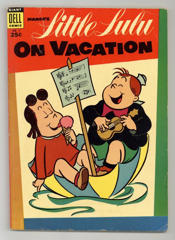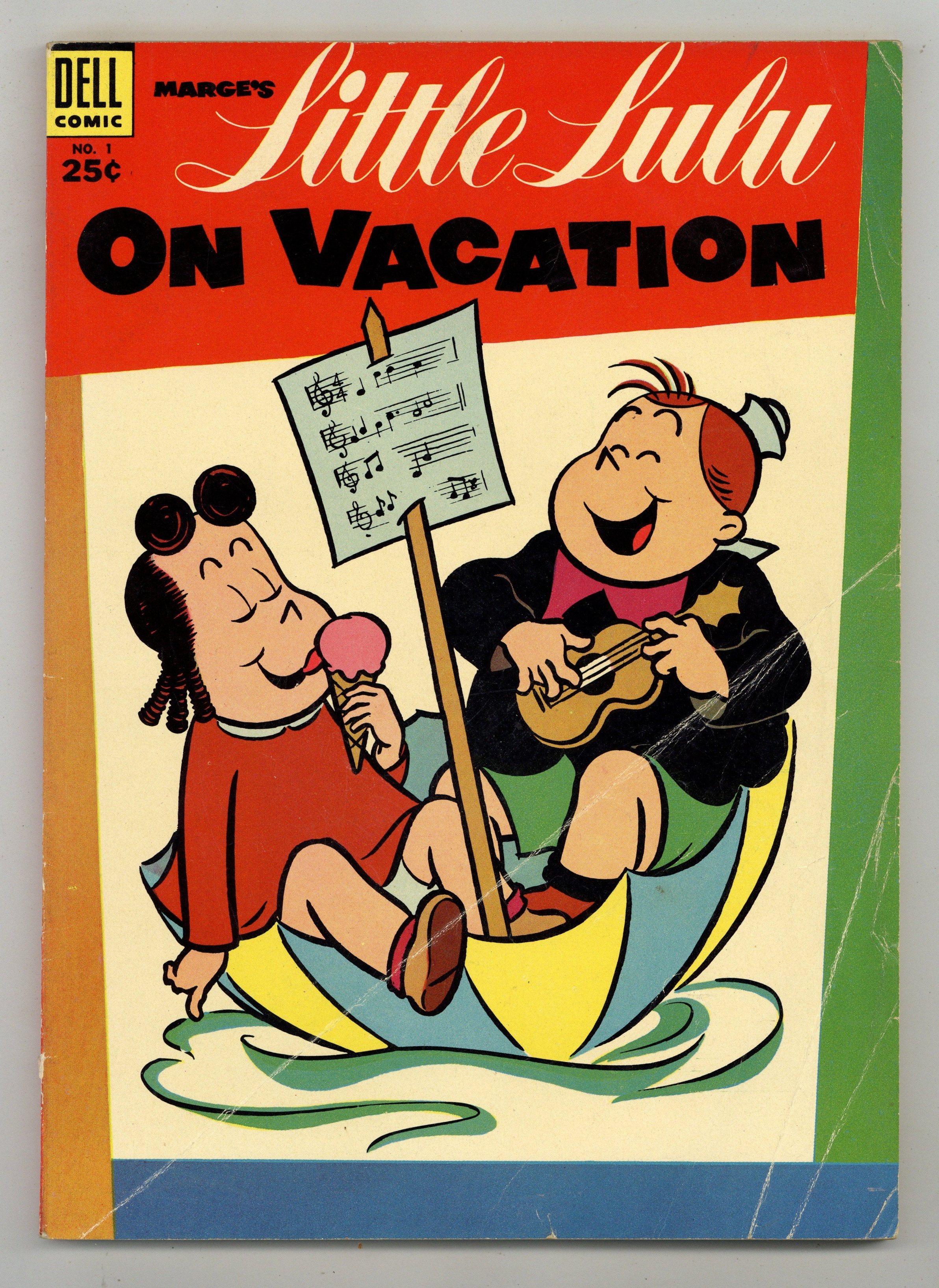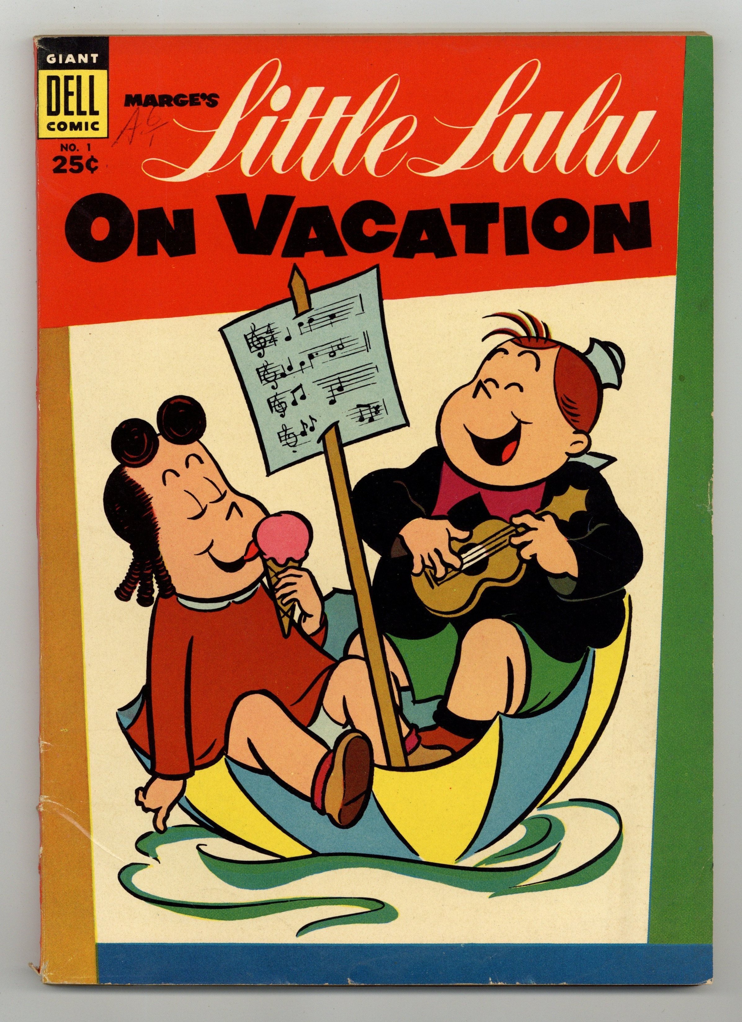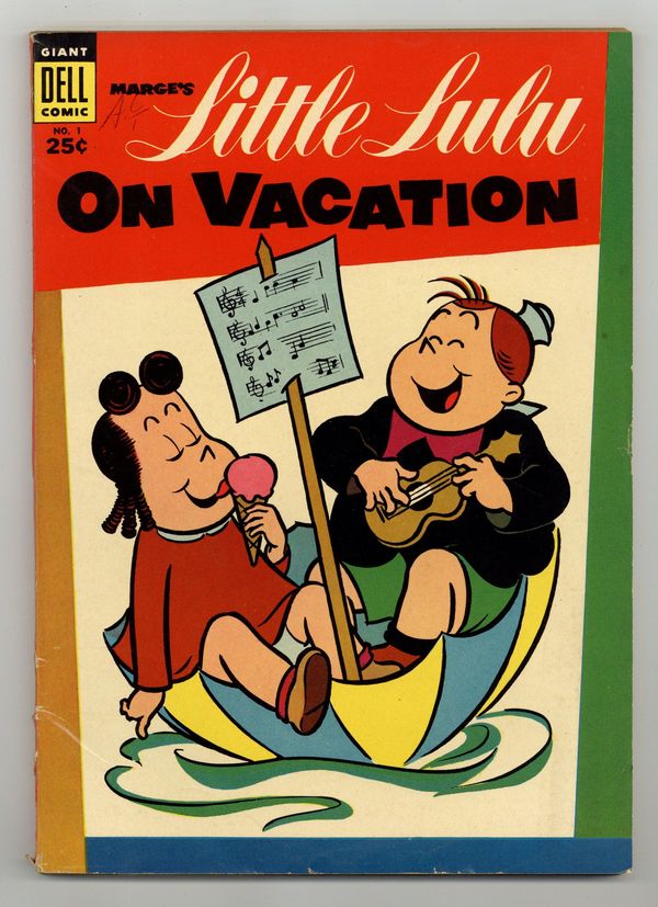 $45.00Four Color reprints: Little Lulu in "Treasure Hunt," "Sunday Afternoon," "The Dancing Bear," "Tubby's Travels," "A Feathered Friend in Need," "Just a Gigolo," "Babes in the Wood," "Mountain Climbing," and an untitled story. John Stanley art. 100 Pages, Full Color. Cover price $0.25.