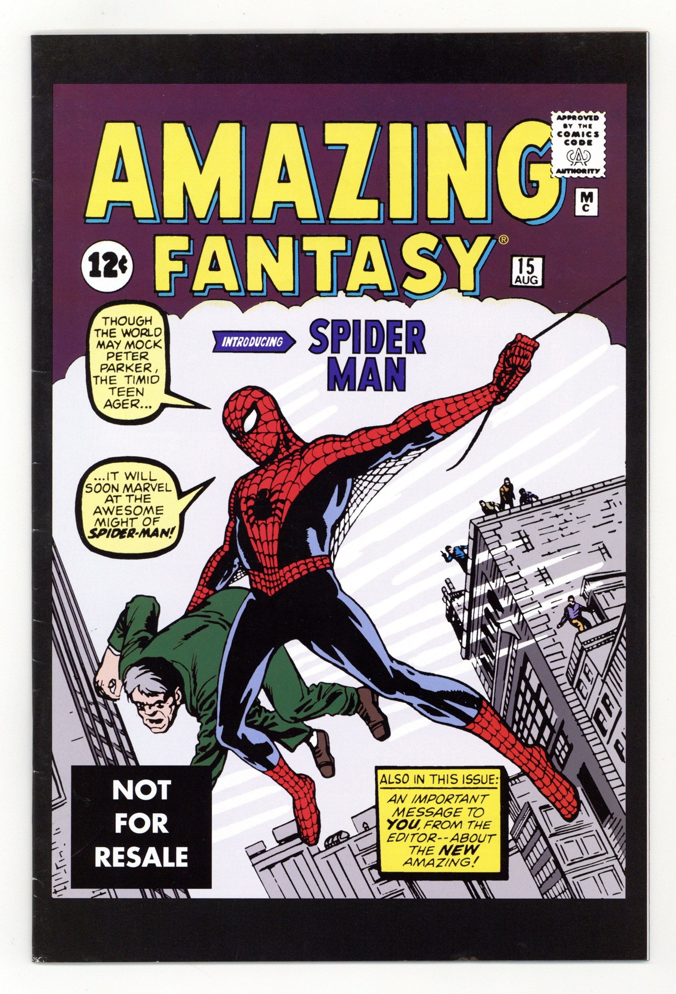 $24.00Dated May 2005 in indicia. Reprint of Amazing Fantasy #15. This 32 Page comic came packaged with First Appearance Spider-man of the Marvel Legends Series X or action figures (The Sentinel Series)